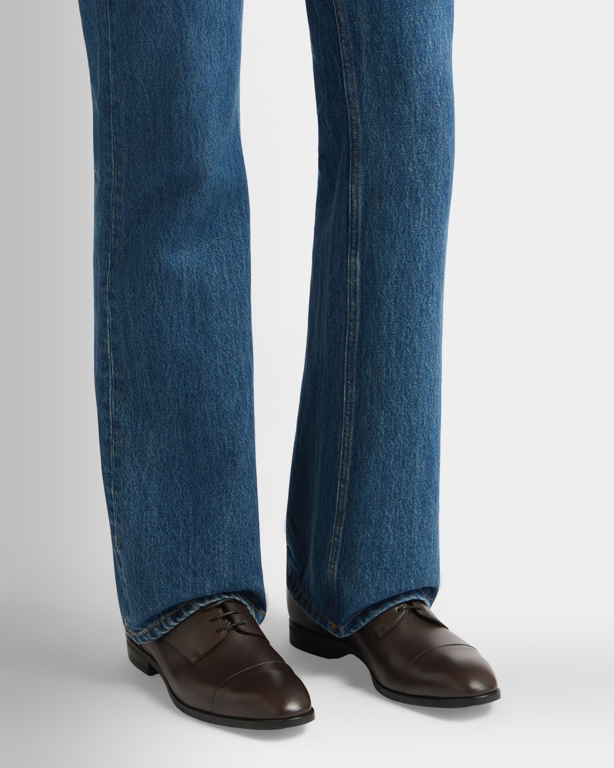 El zapato derby Onizy muestra una silueta sencilla de piel de becerro marrón lisa con puntera alargada y suela de goma.