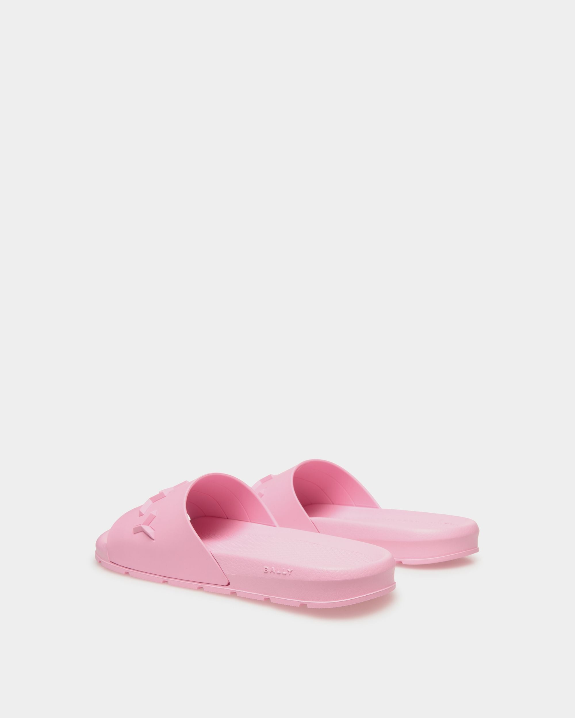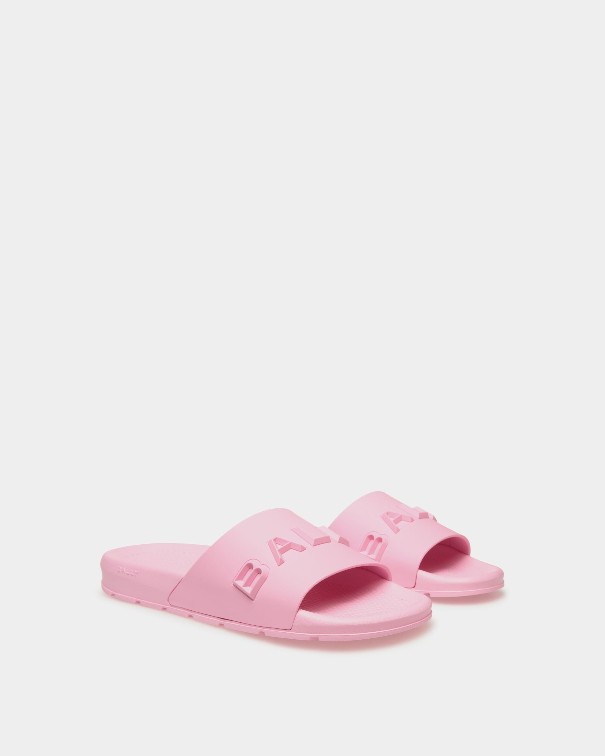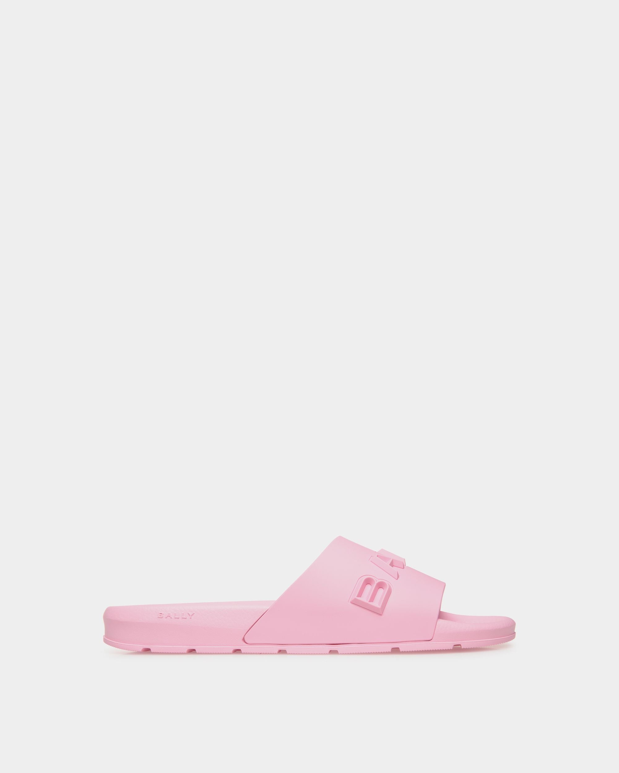 This Seaside Slide in Rubber is embellished by the distinctive Bally Spell logo on the upper, here in taffy pink.