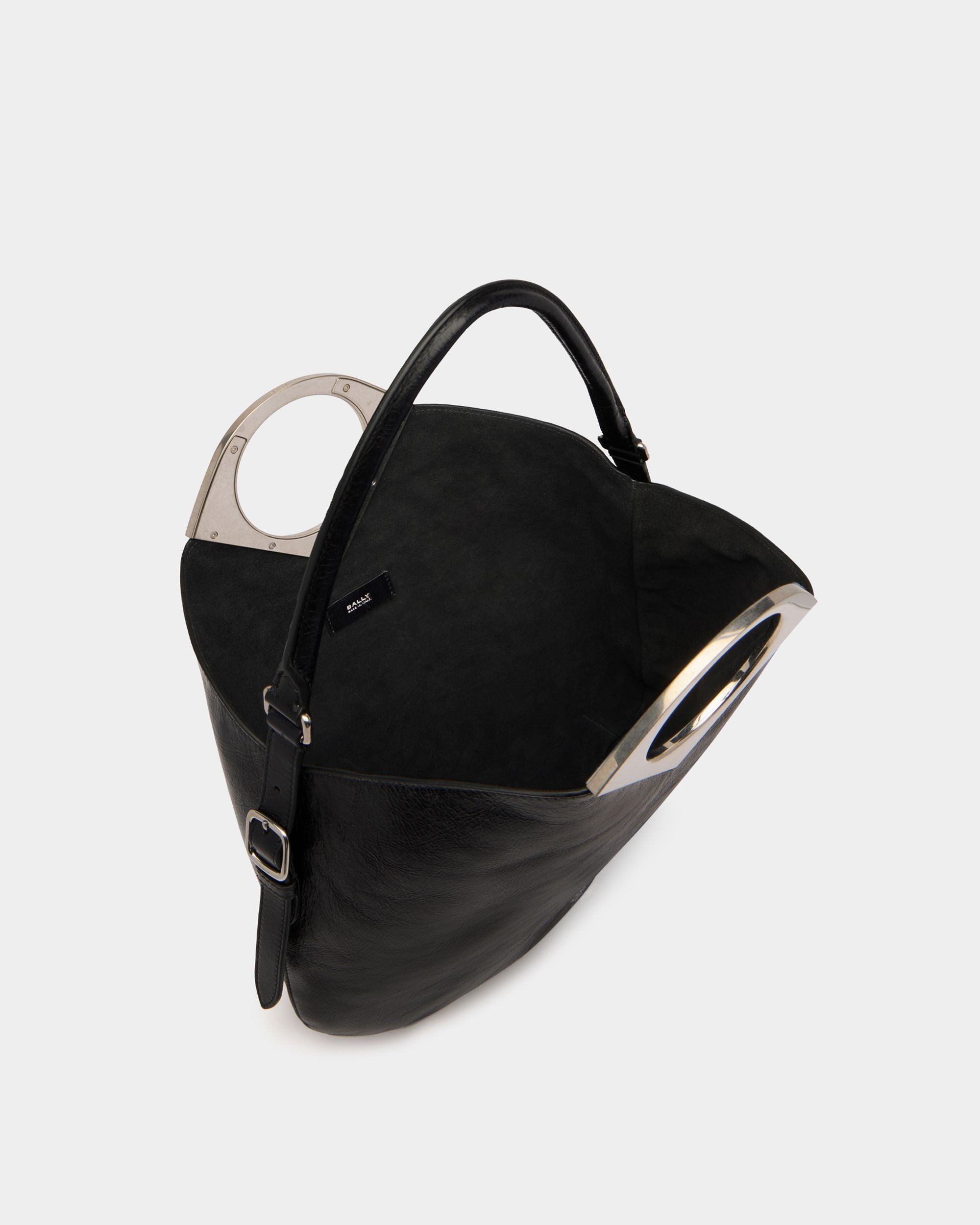 Ce sac d’épaule Anni est confectionné en cuir noir et présente une silhouette douce. Un détail géométrique en métal couleur palladium orne la fermeture à rabat.