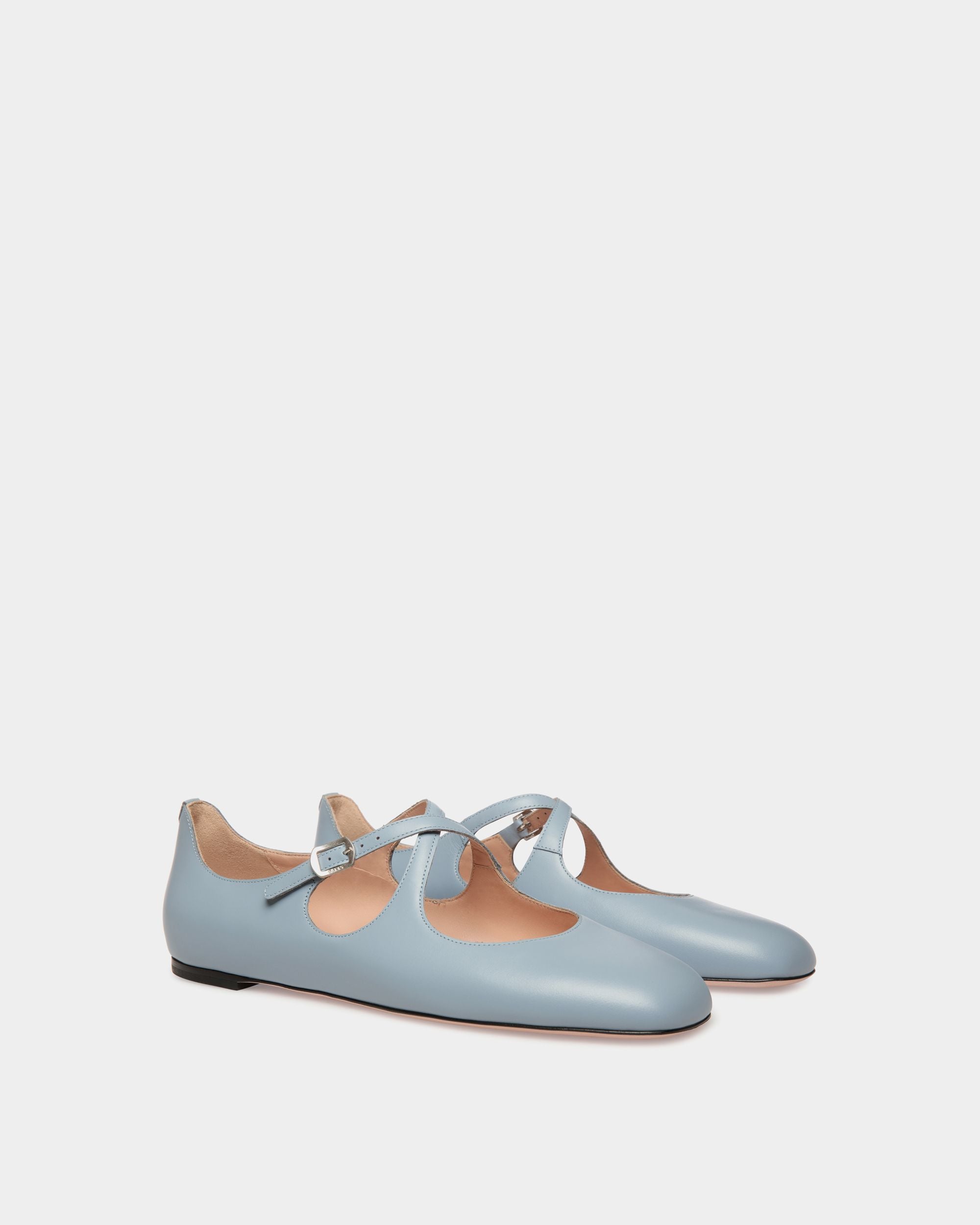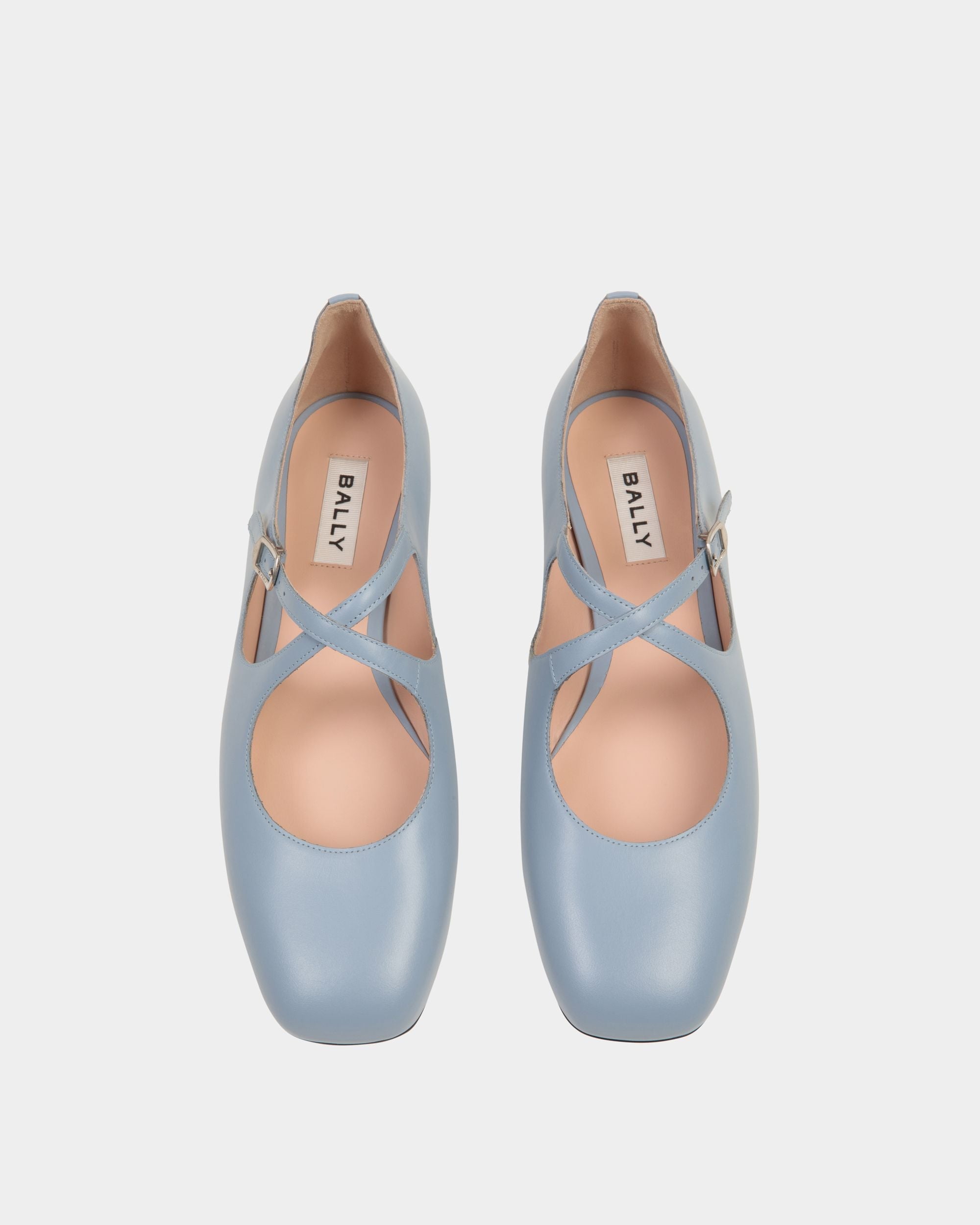 Chaussure À Talon Plat Ballyrina En Cuir Light Blue
