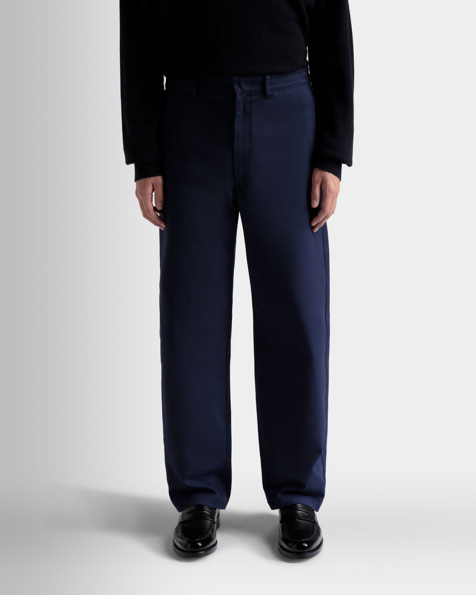 Made from luxurious navy blue cotton, these pants are polished in their aesthetic. The high-quality fabric provides a soft, smooth feel, while the classic design ensures timeless style for any occasion.