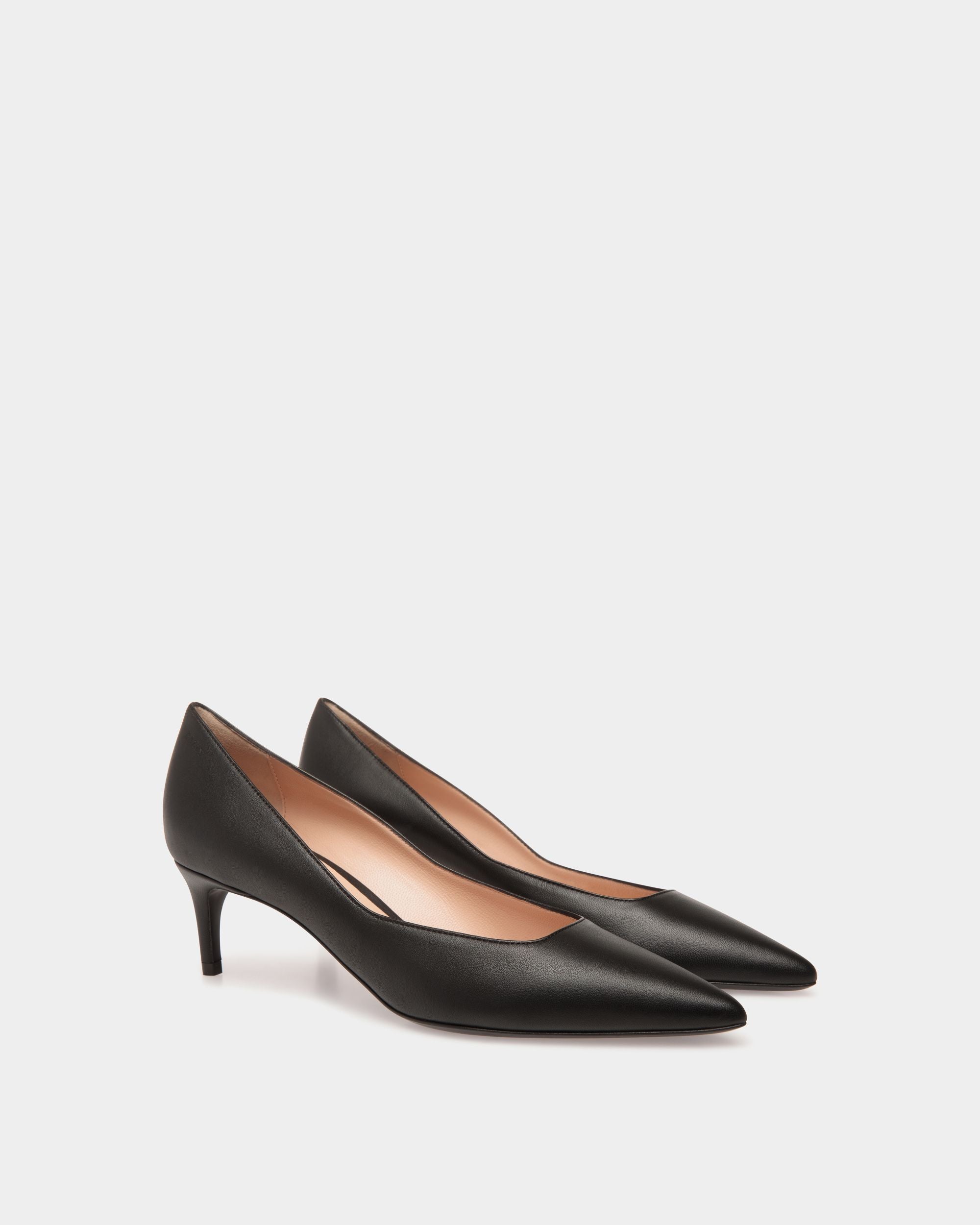 Ces escarpins sont confectionnés en cuir souple. Il présente un talon gainé de cuir et un bout pointu.