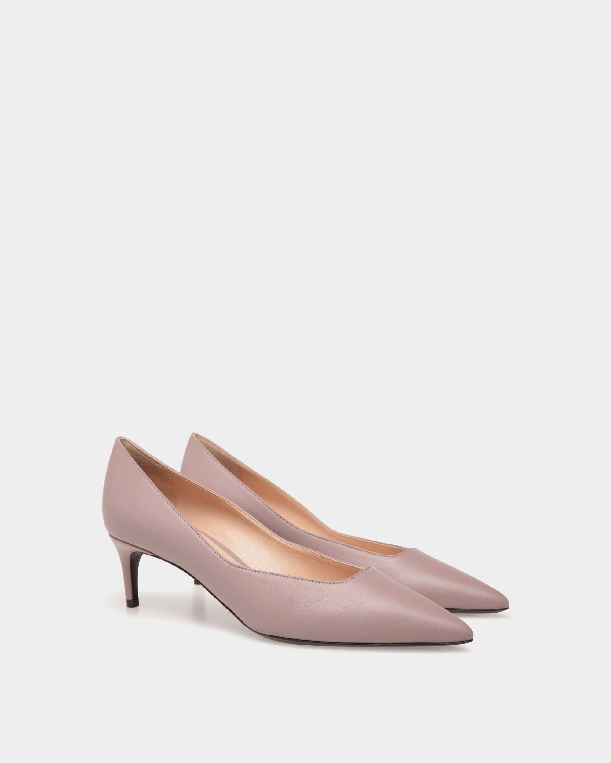 Ces escarpins sont confectionnés en cuir souple. Il présente un talon gainé de cuir et un bout pointu.