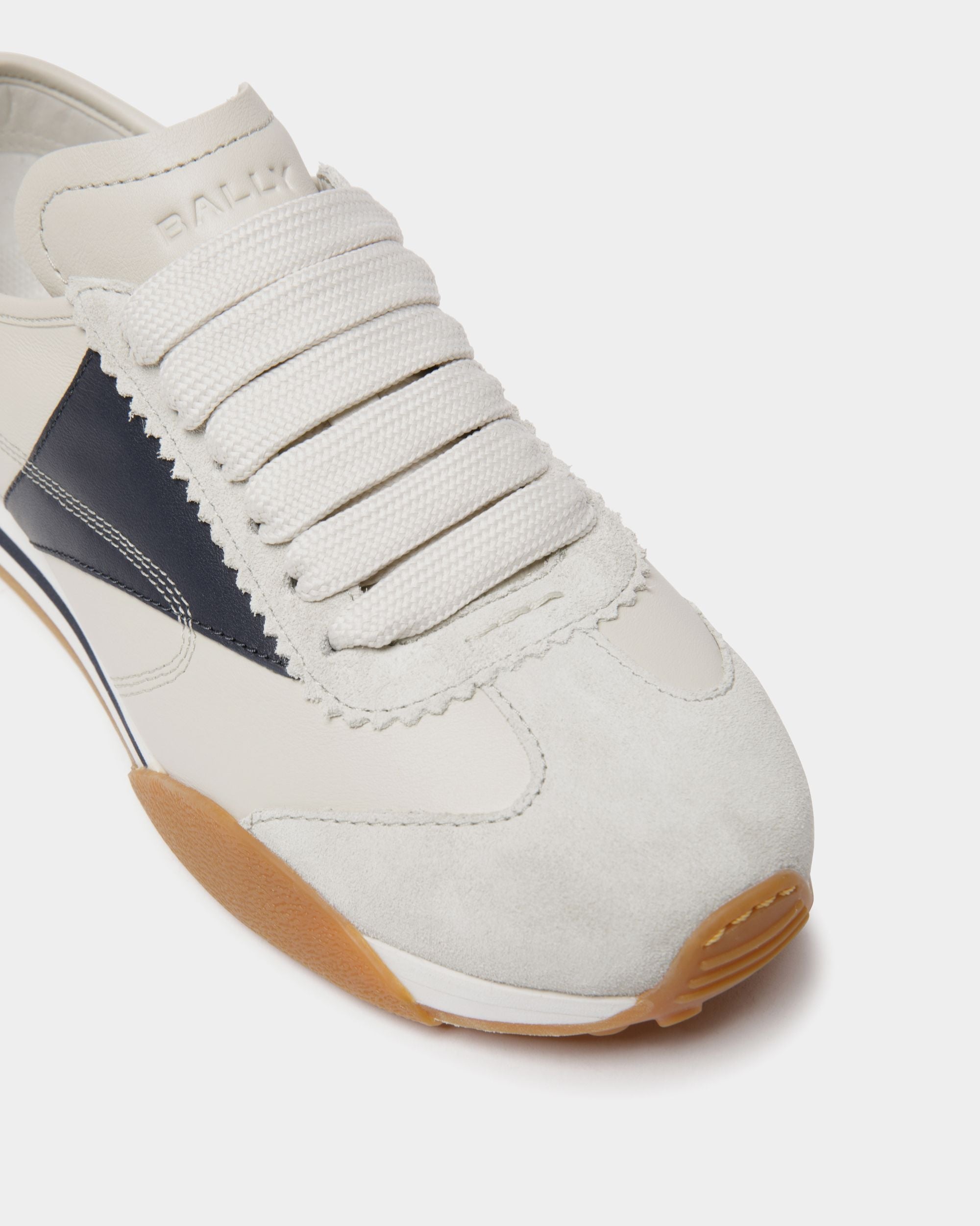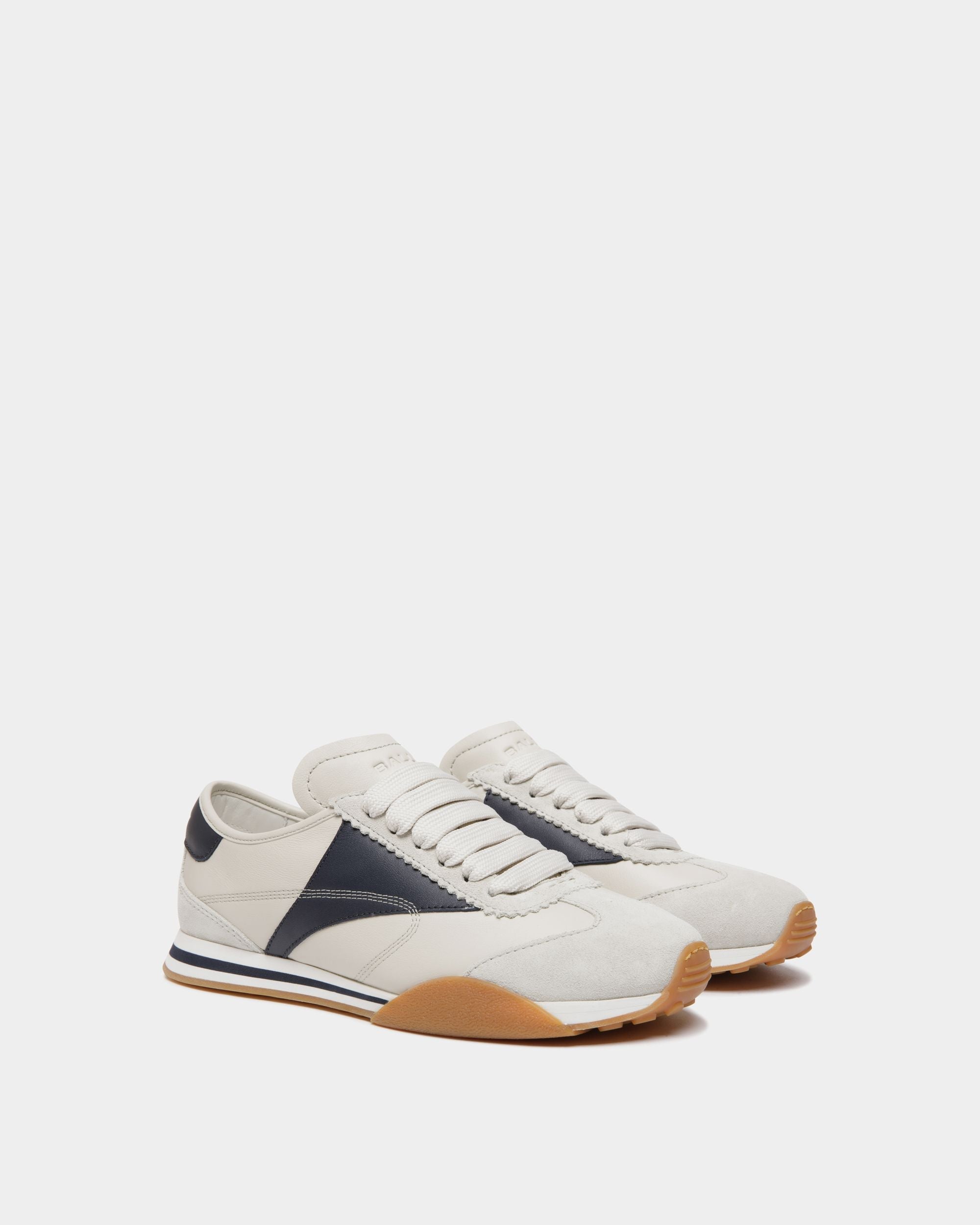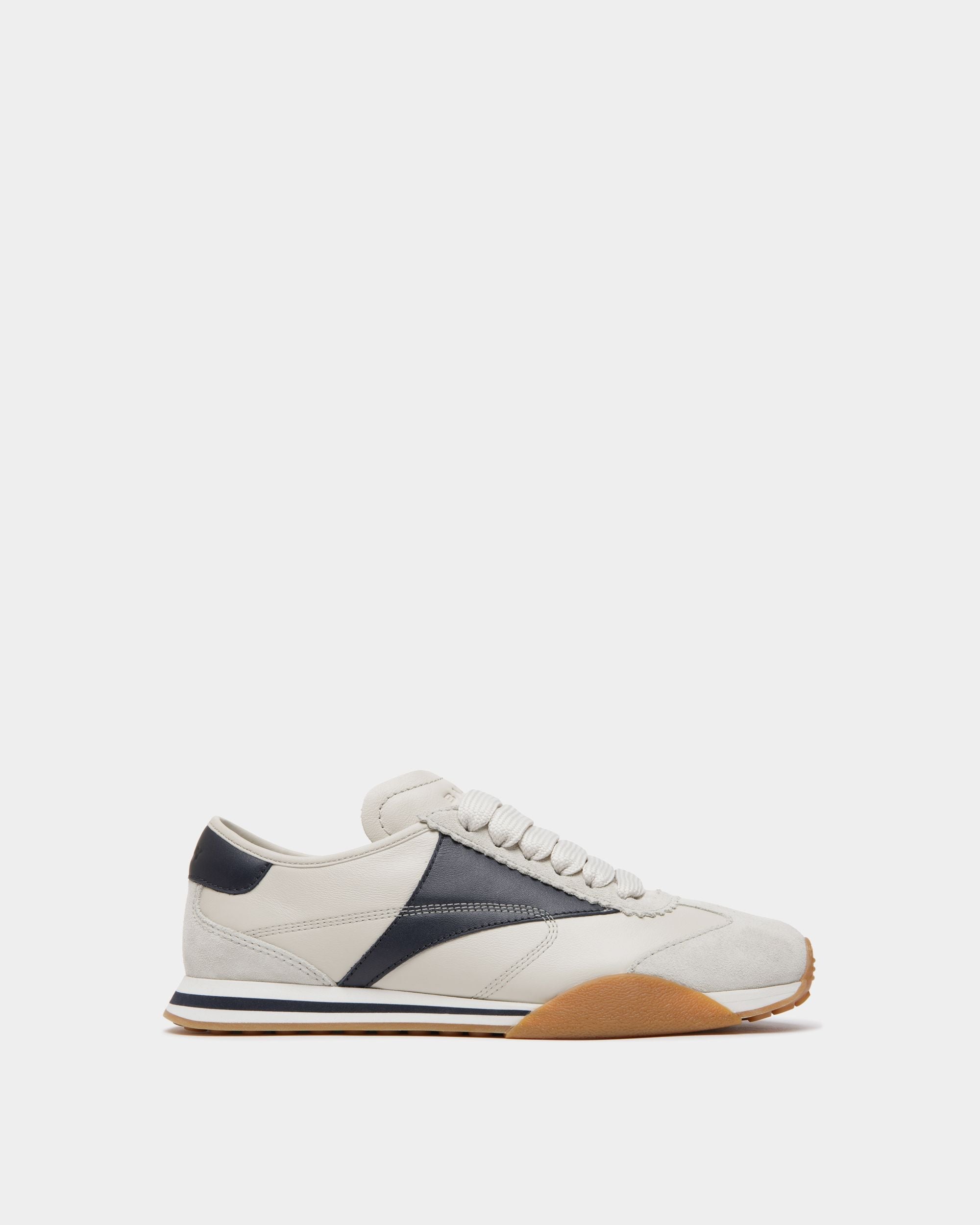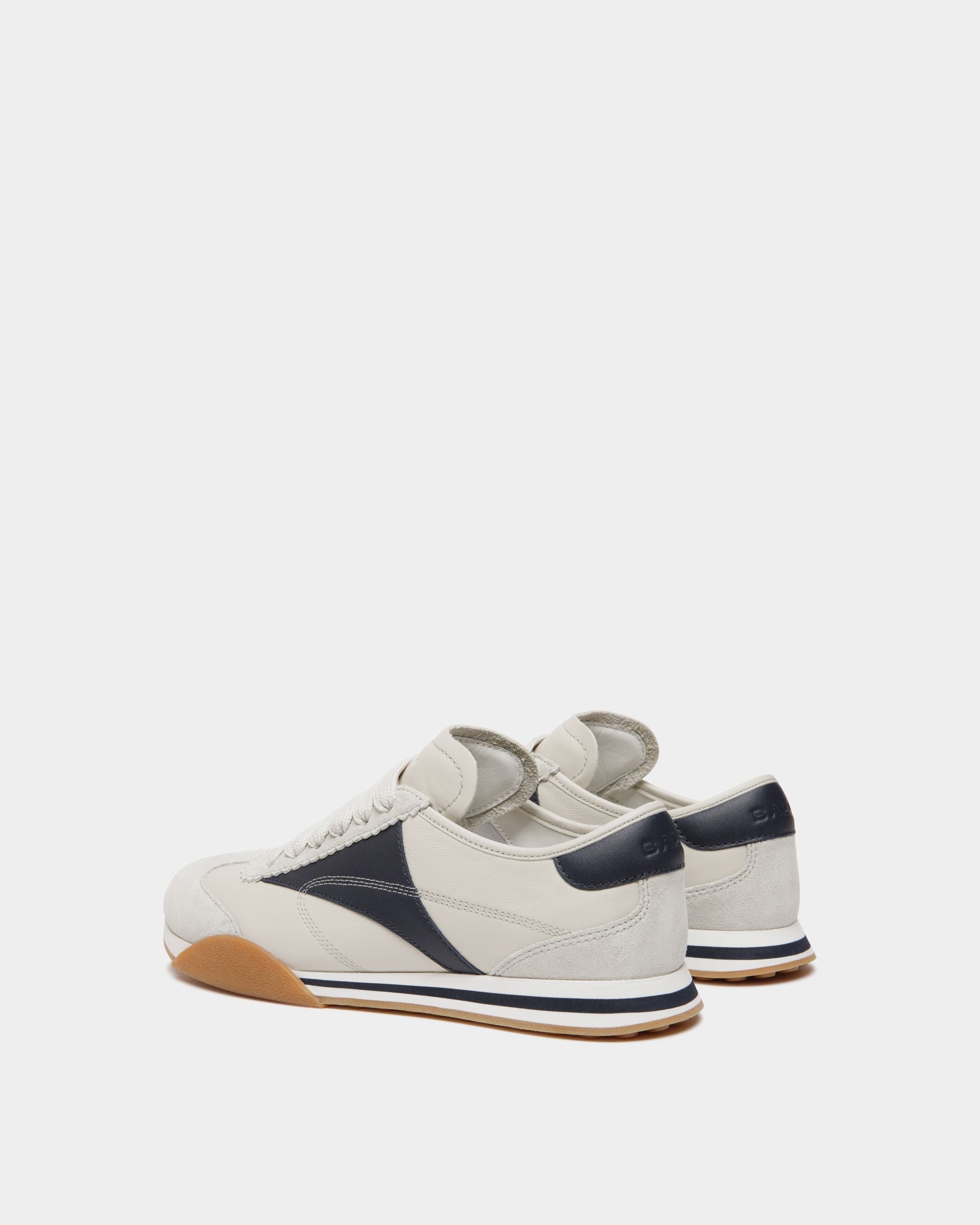 In a sleek fusion of white and navy blue leather, the Sussex sneaker is a modern take on a classic vintage running shoe.