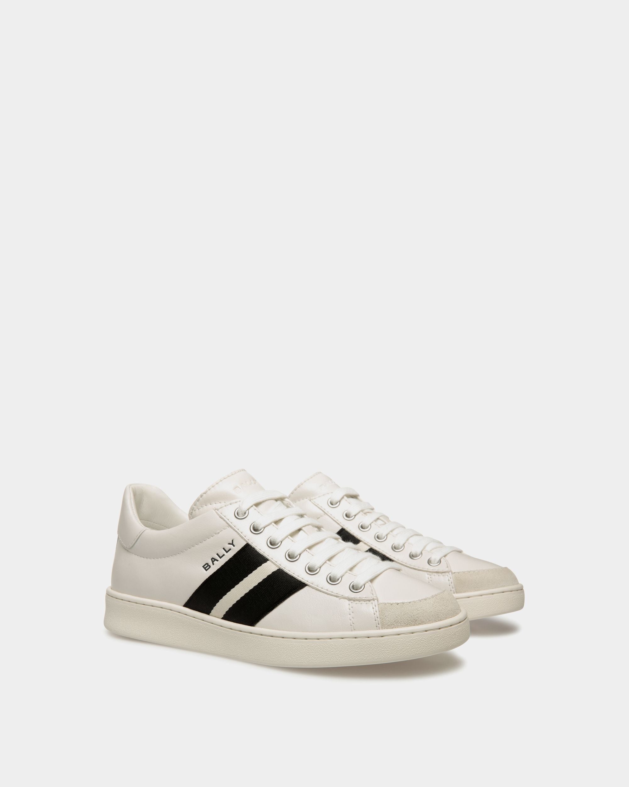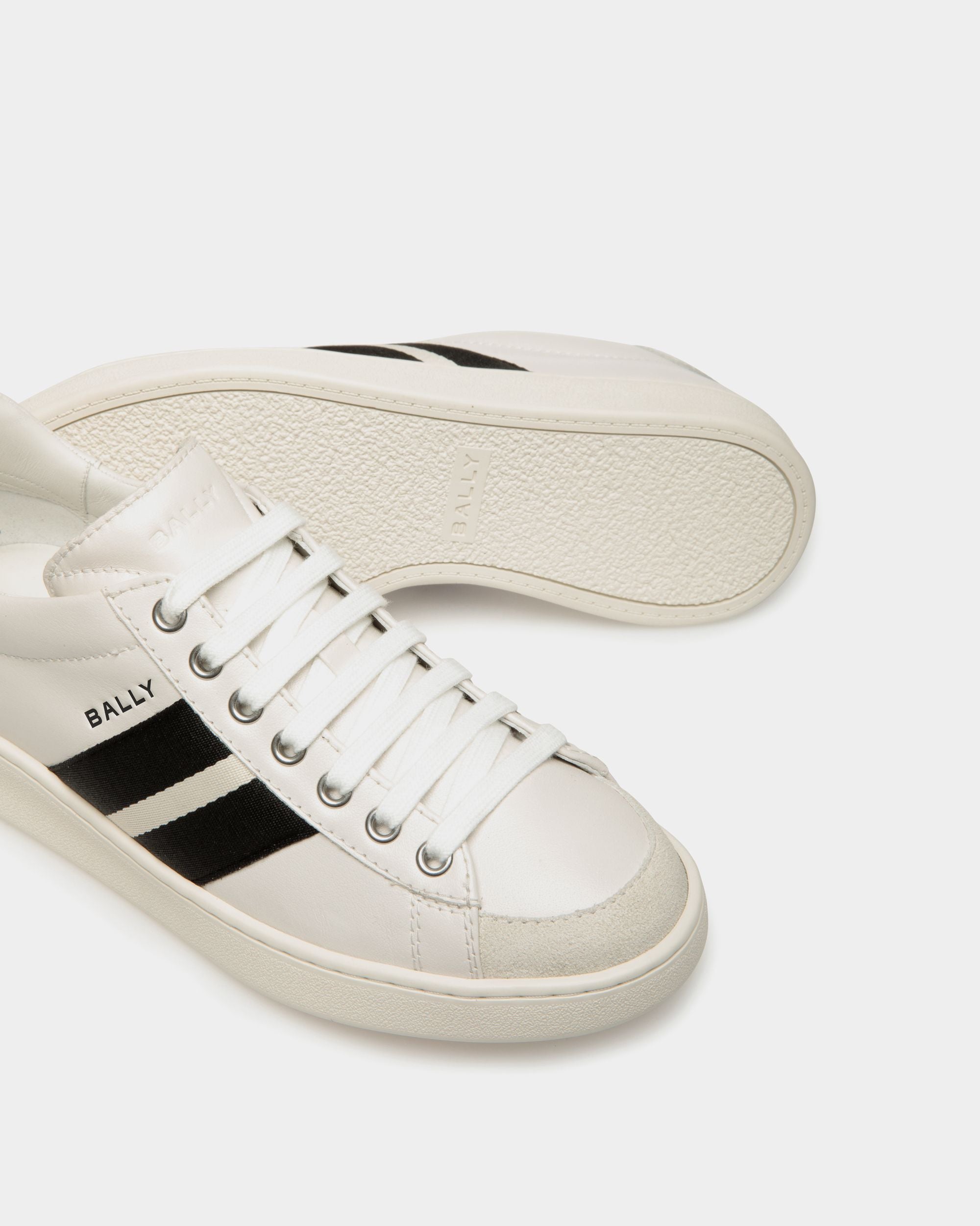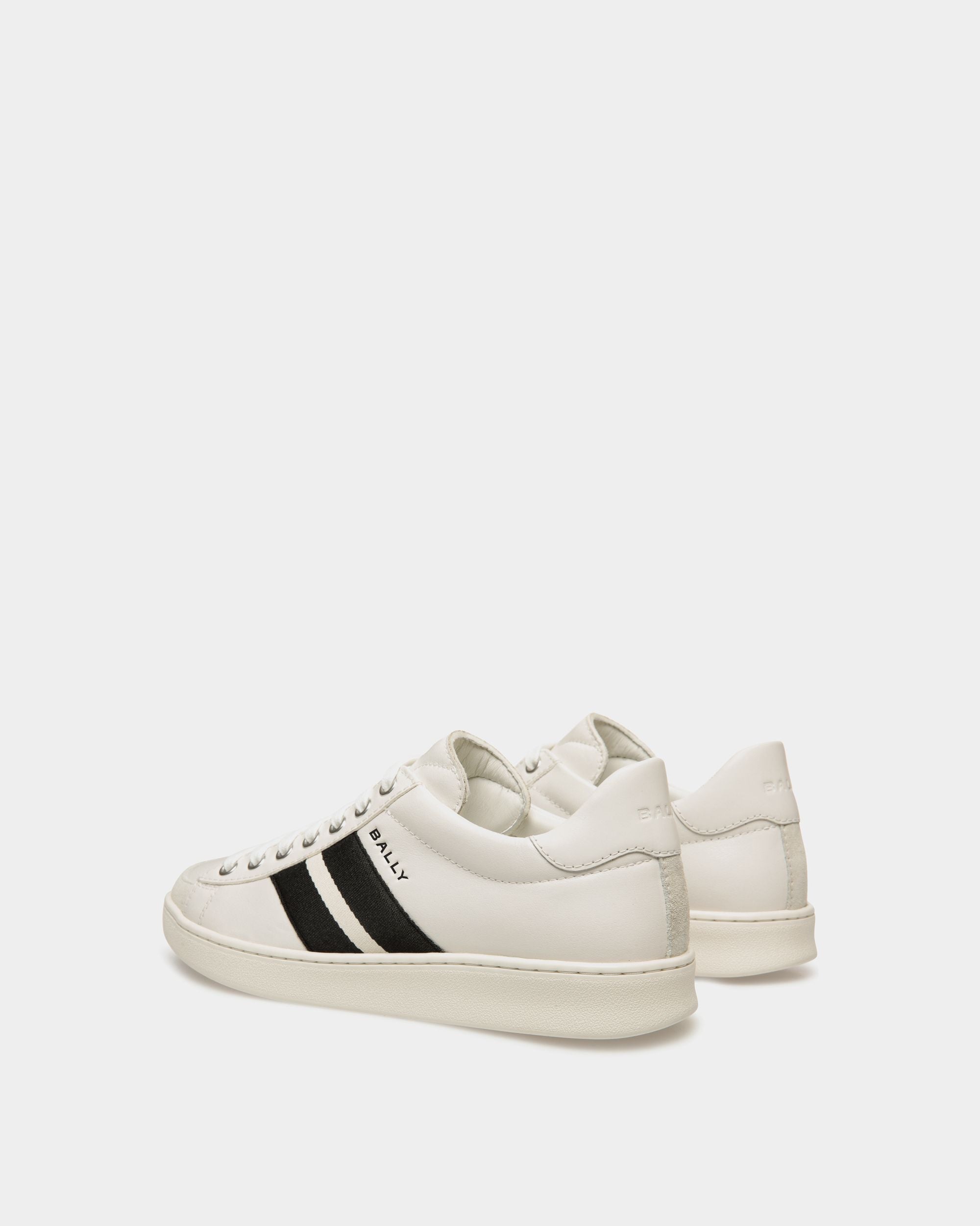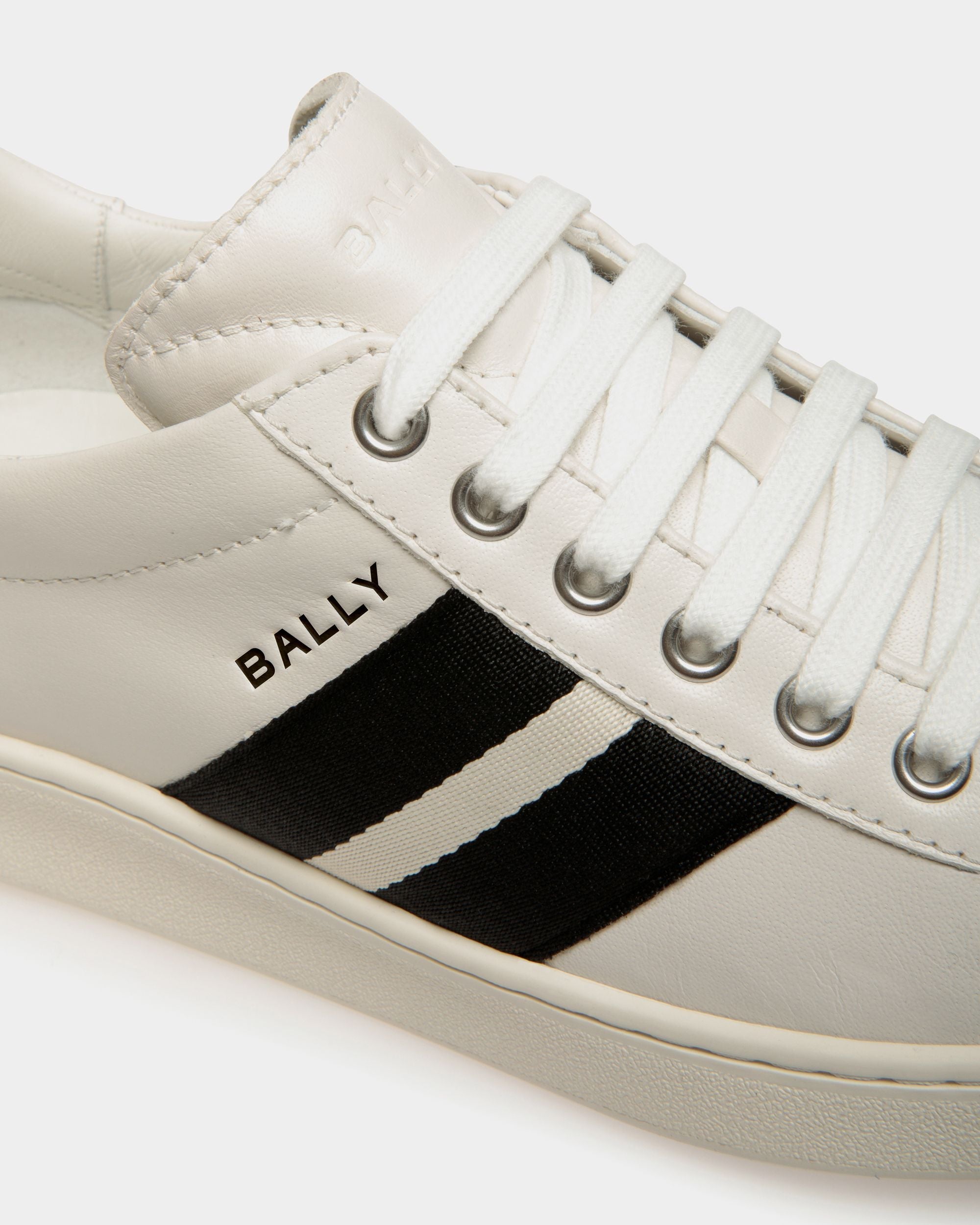 In smooth buffalo leather, this Tennis sneaker draws inspiration from vintage footwear to combine style and versatility. The upper is enriched by a black and white grosgrain Bally Ribbon and a debossed Bally logo.