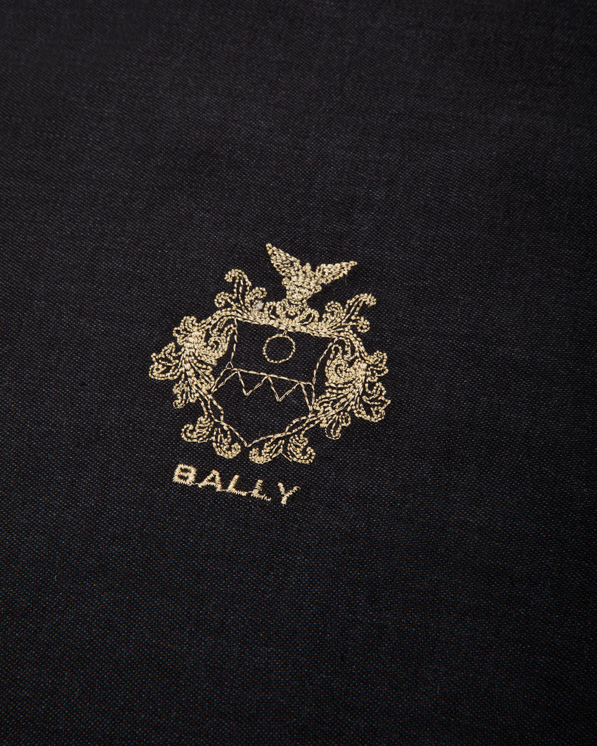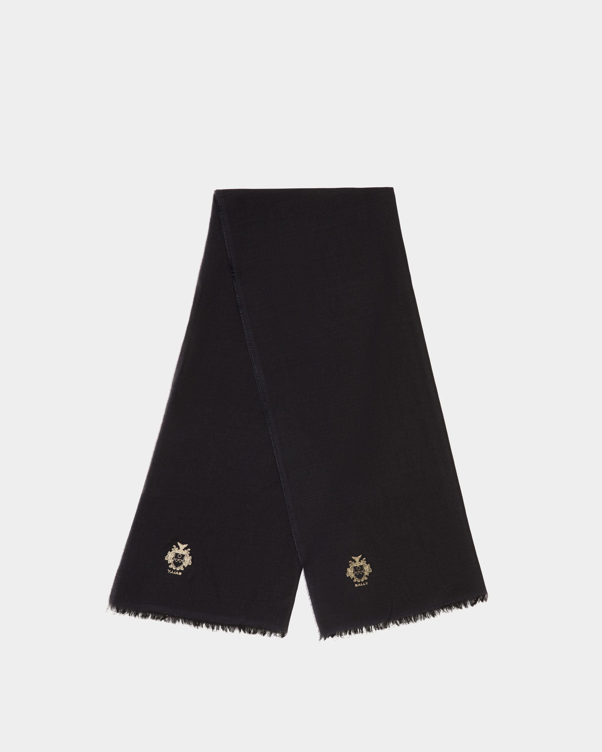 In a blend of silk and cashmere, this Adrien Brody Travel Collection scarf is trimmed by an embroidered Bally Crest and soft fraying on the short sides.