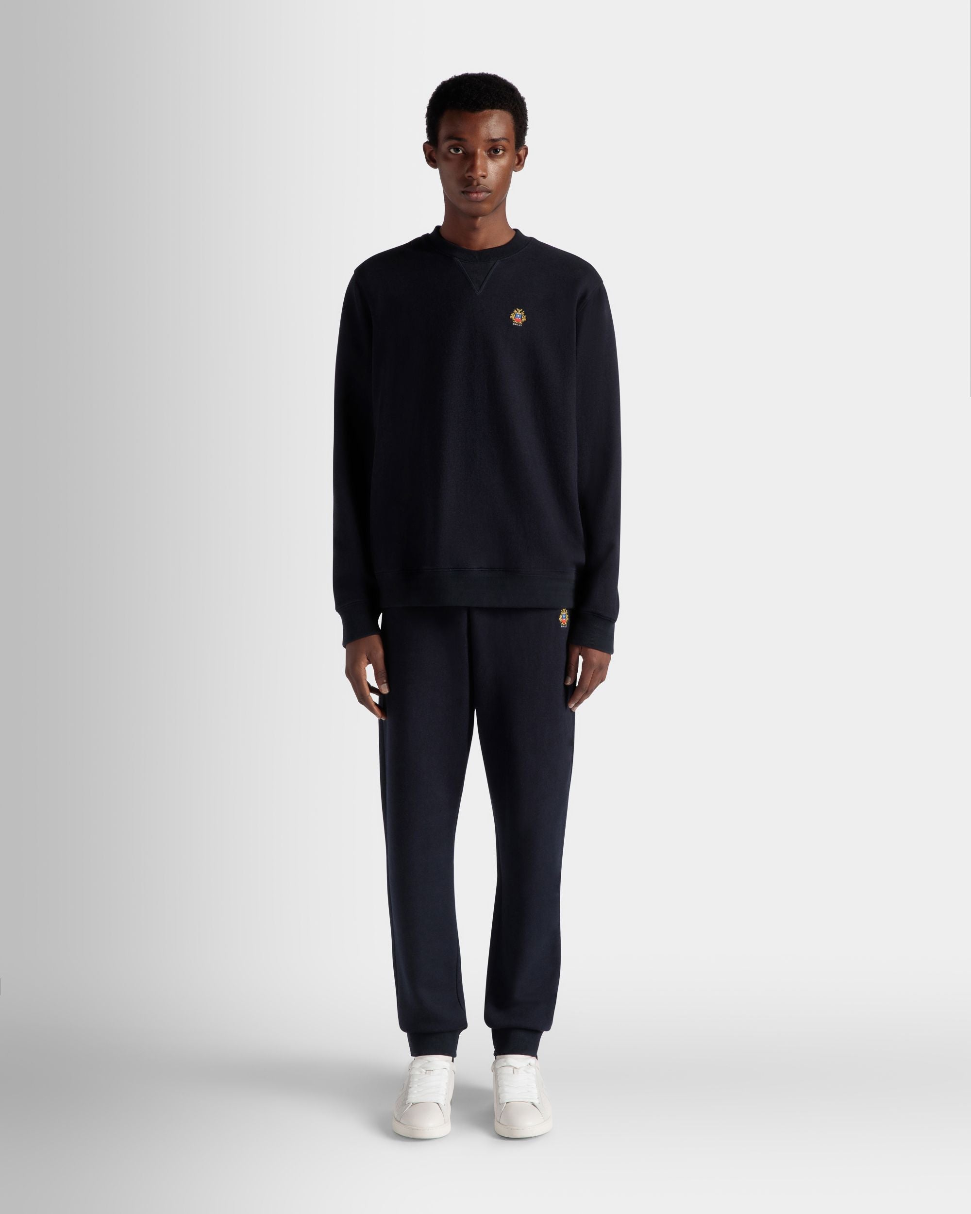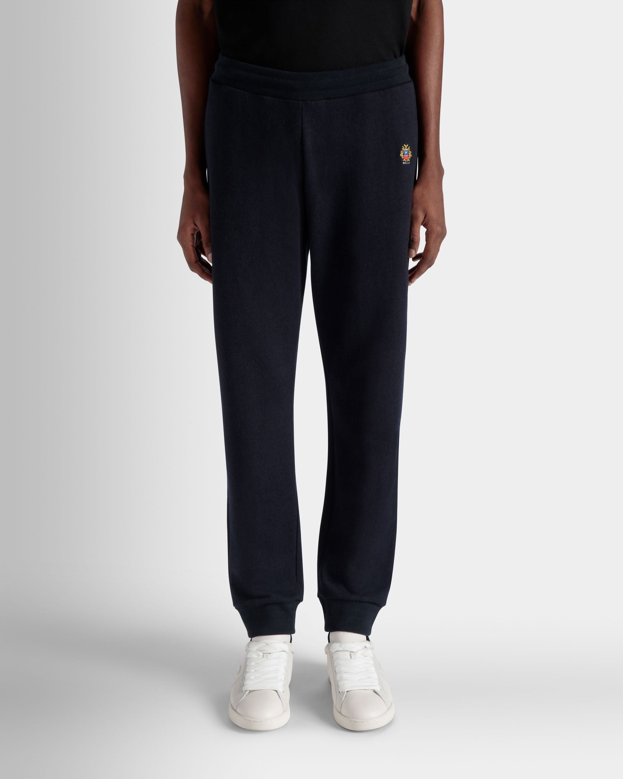 A relaxed silhouette determines the character of these Adrian Brody Travel Collection sweatpants in a fine cashmere-cotton blend. The gold-tone metal aglets of the drawstring are embellished by a debossed Bally logo for a sophisticated touch.