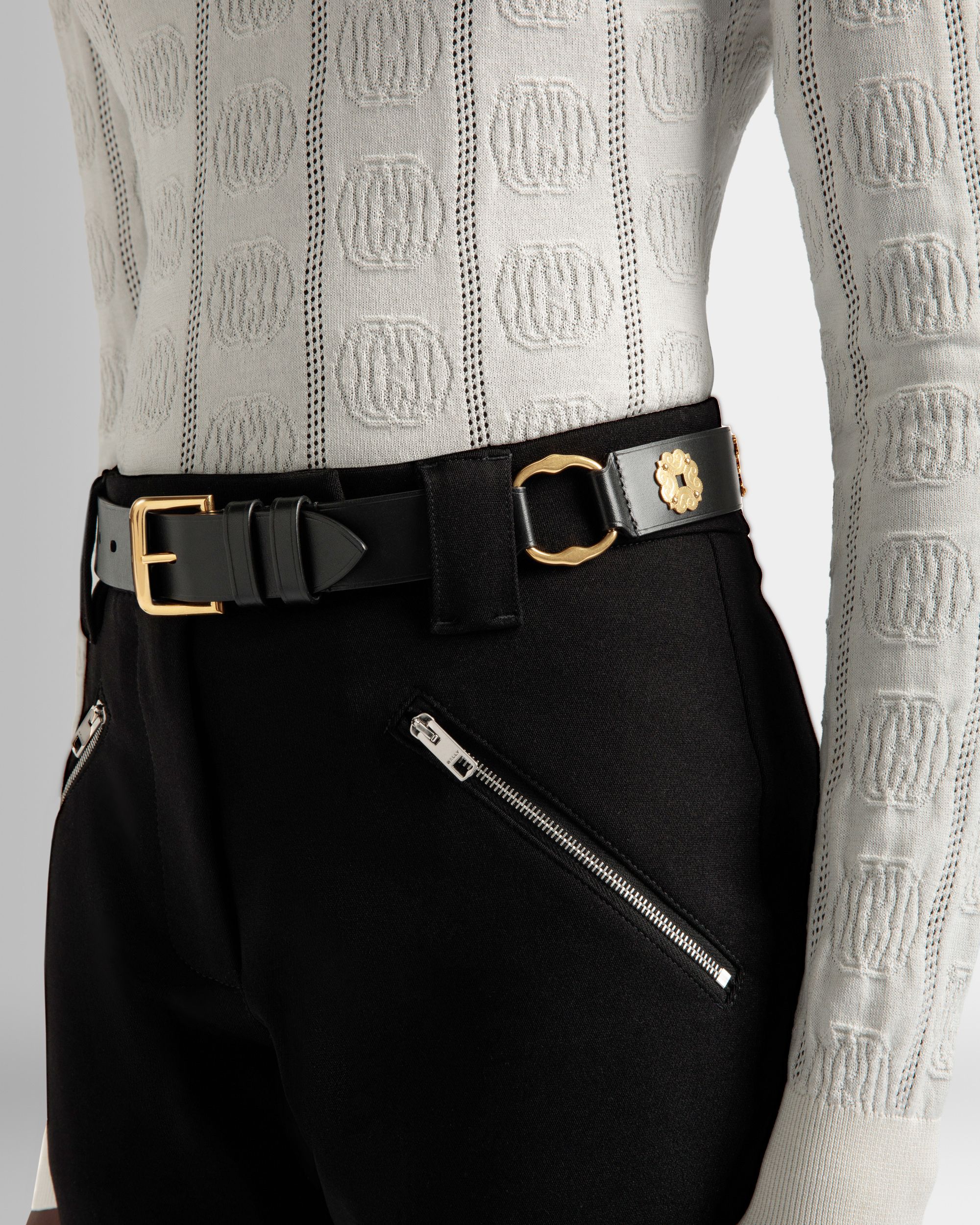 Elevate your style with this luxurious black calf leather belt, meticulously handcrafted with the finest materials. Its smooth texture and gold-tone hardware create a refined look that effortlessly complements both casual and formal attire. Length: 105 cm / 41.3 in. Made in Italy.