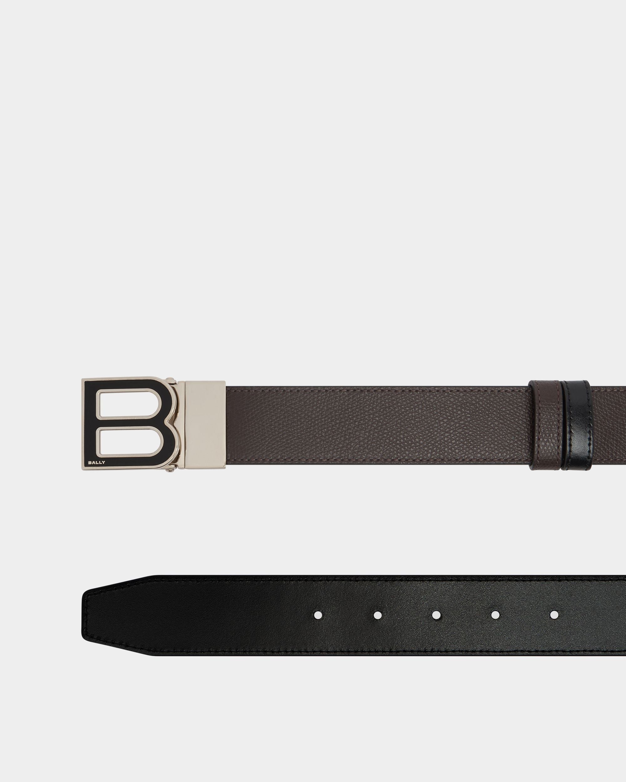 B Logo 35mm Adjustable And Reversible Belt in Ebano And Black Leather