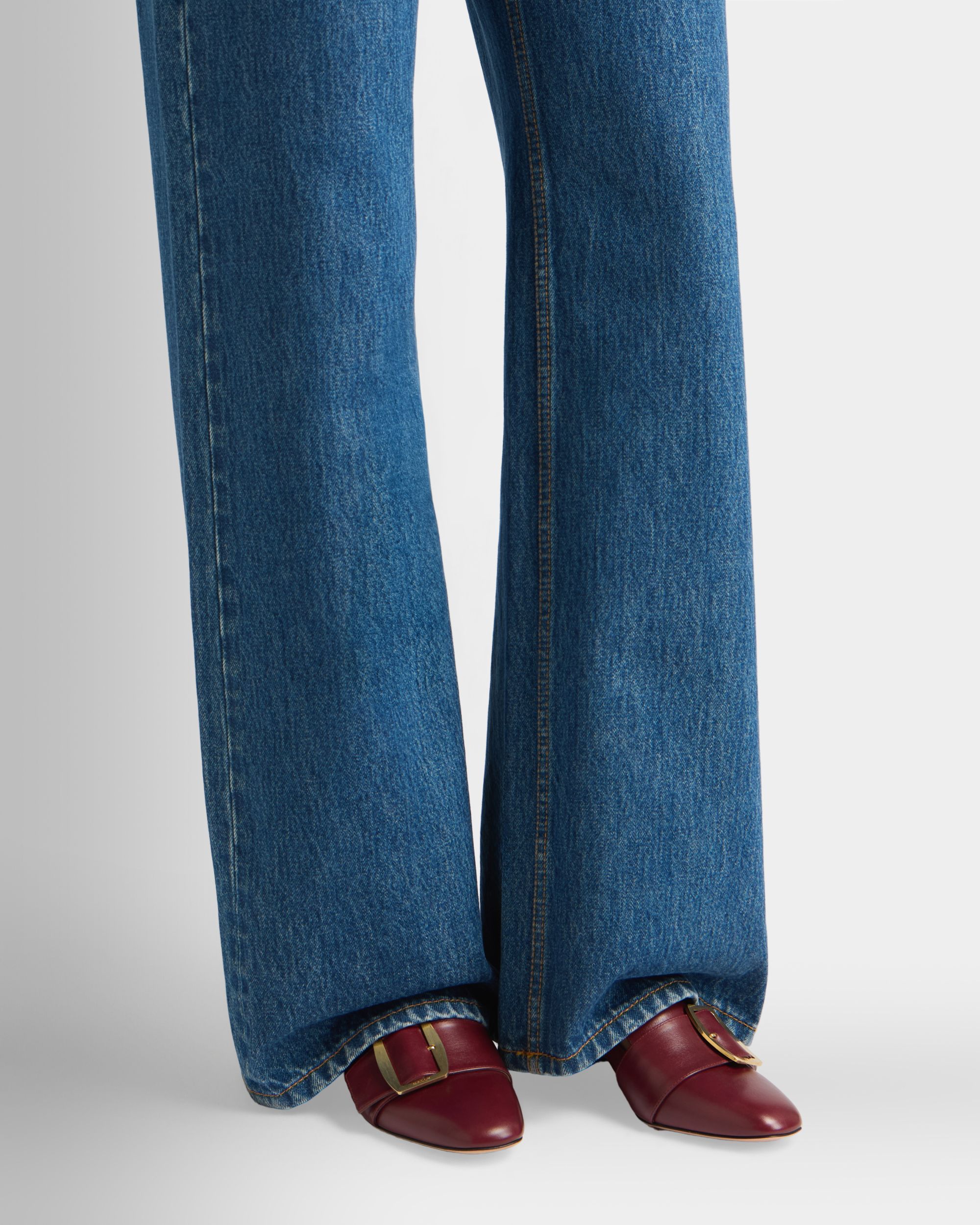This Bally Boucle pump in Andorra leather is characterized by the large buckle at the front, a reinterpretation of an iconic Bally detail from the 1920s. To the back, the heel folds down for use as a mule.