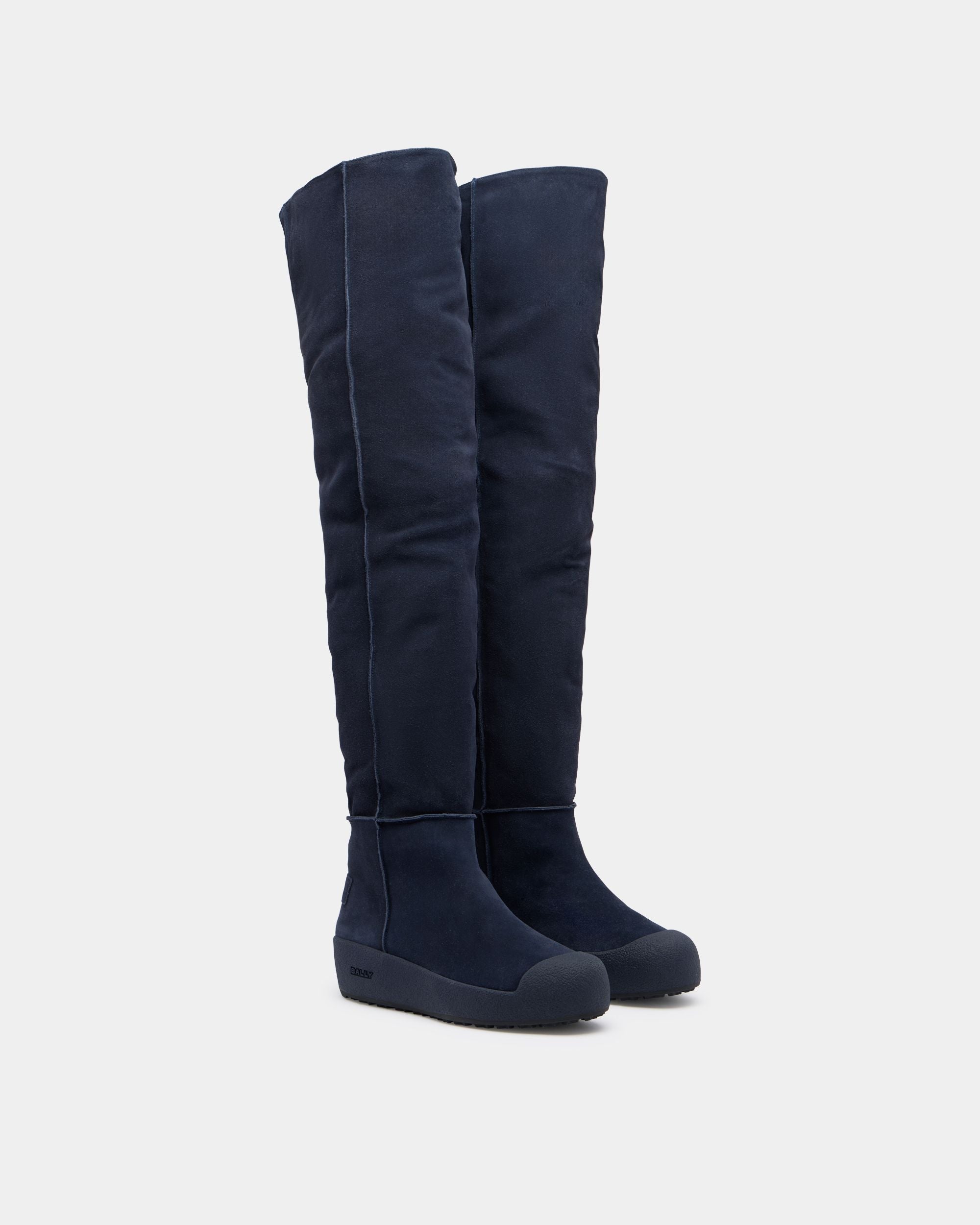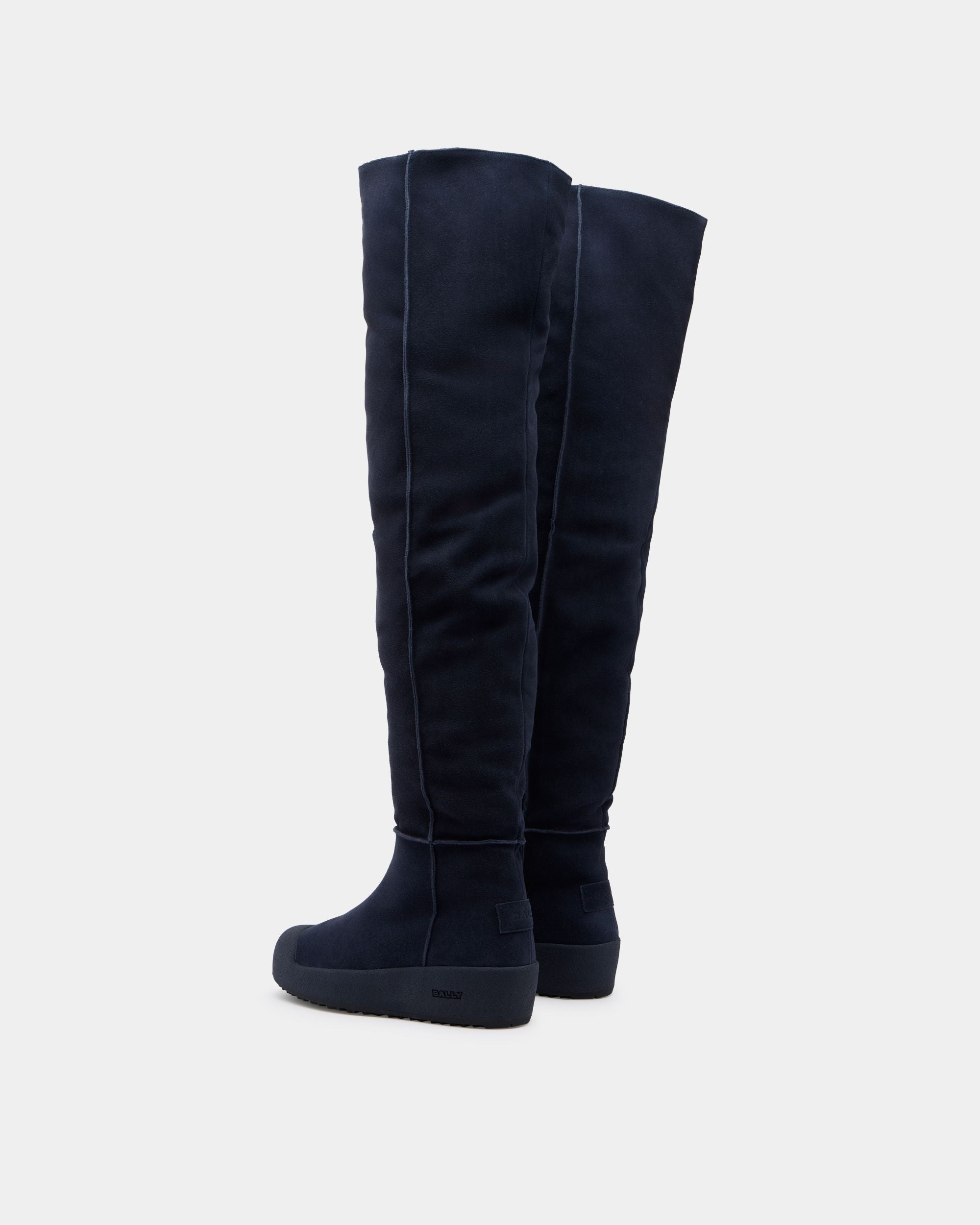 Bally Curling Over-the-knee Boot in Navy Blue Suede