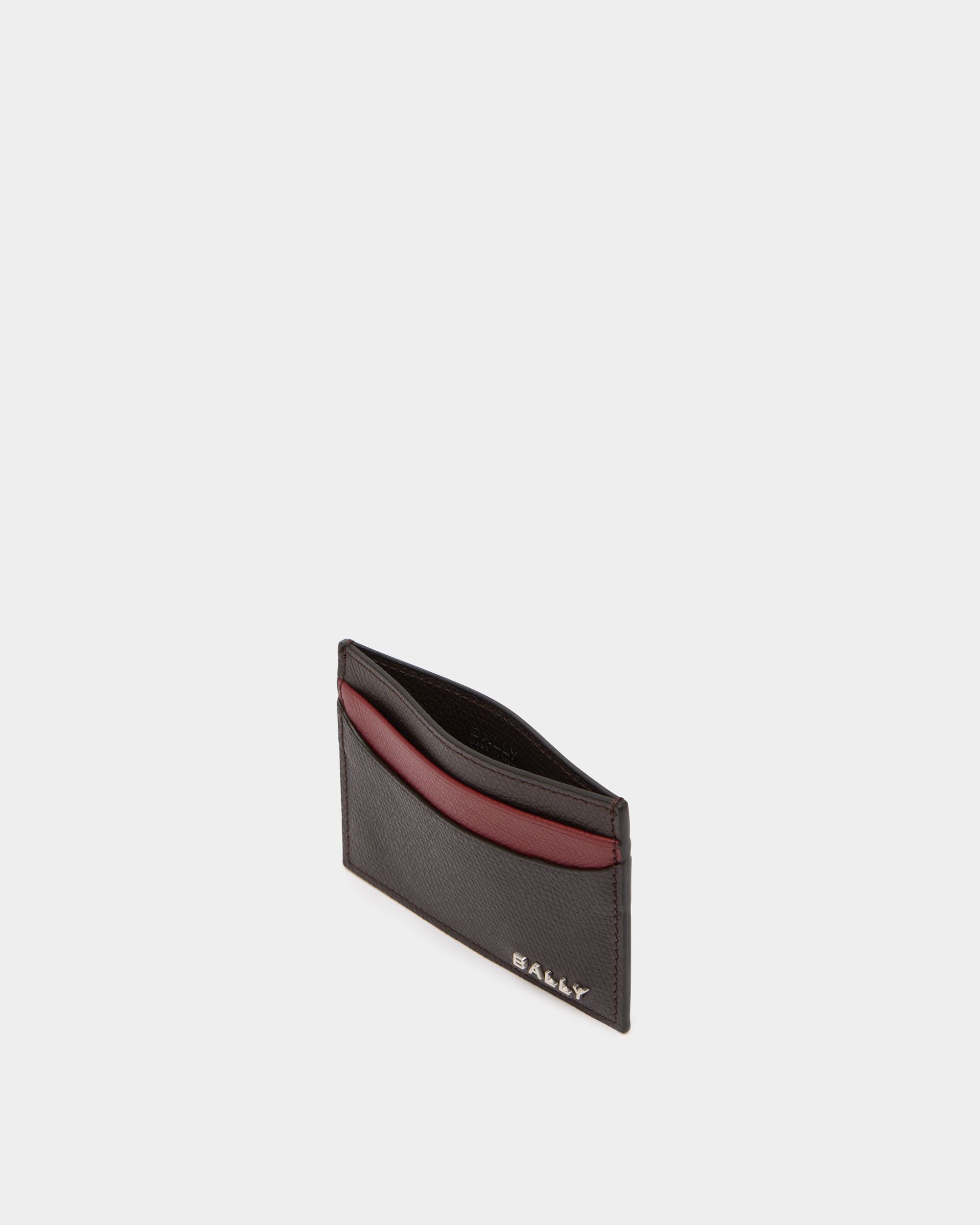 Bally Essential Card Holder in Ebano And Red Grained Leather