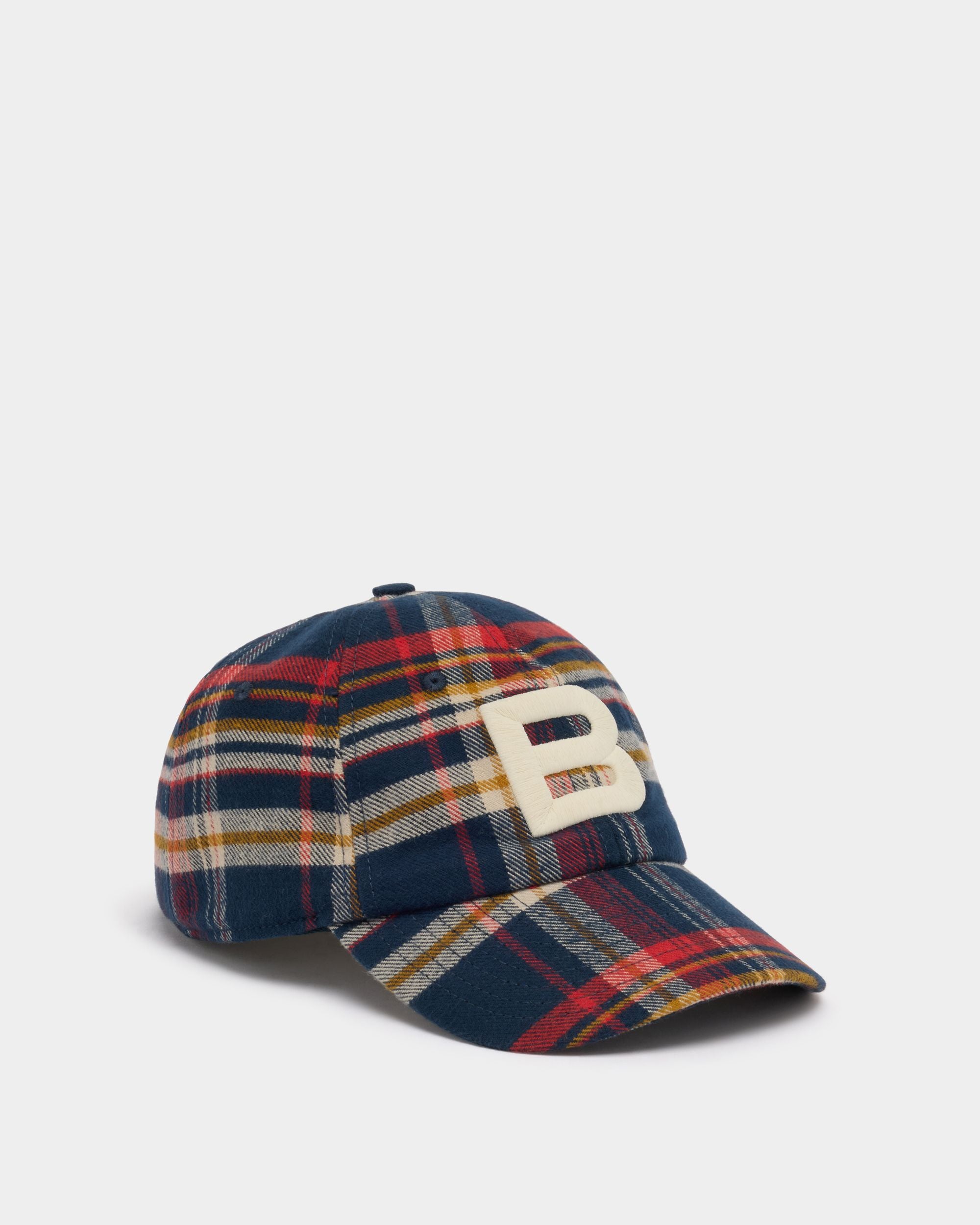 In plaid cotton, this baseball hat is embellished by an embroidered Bally B at the front.