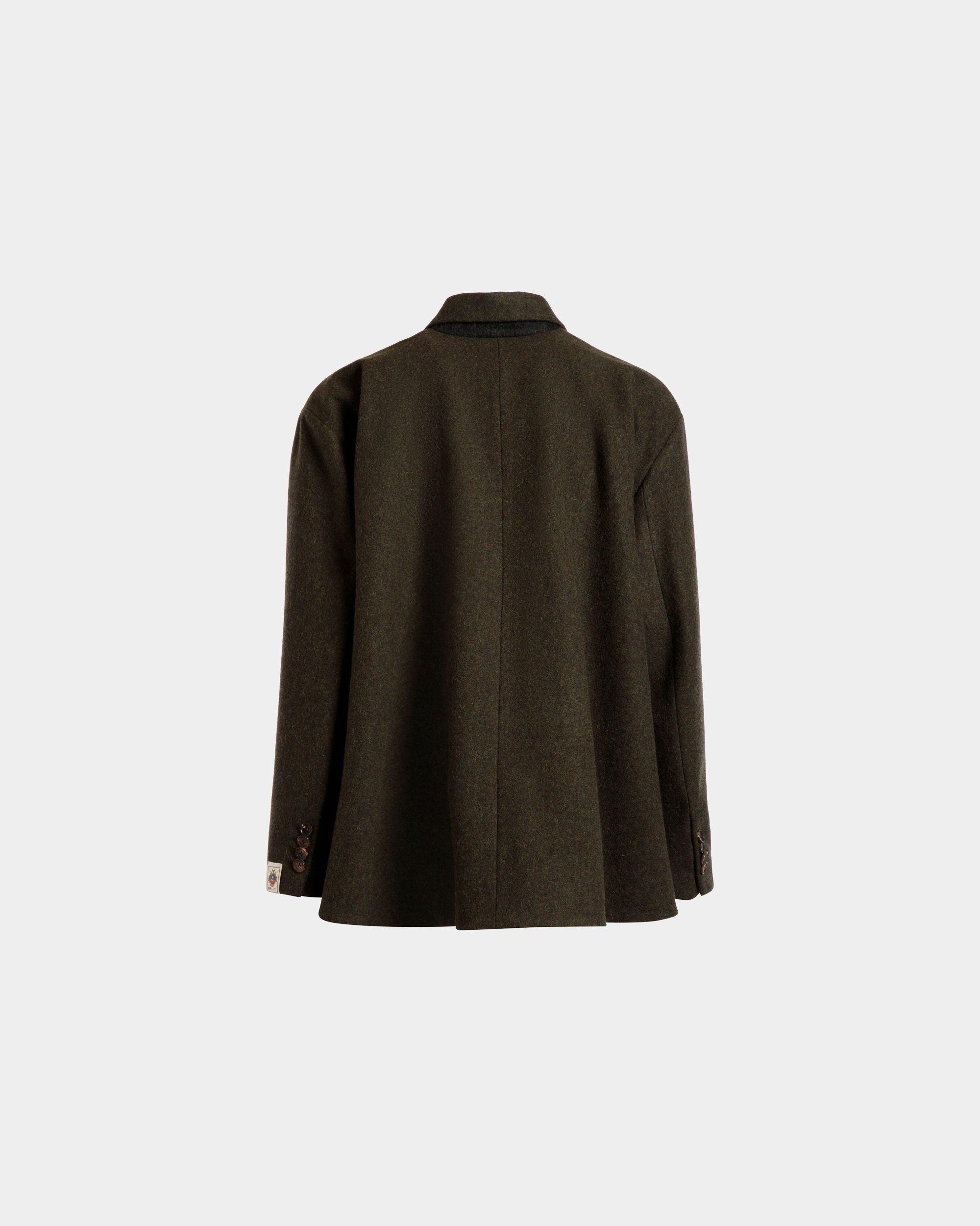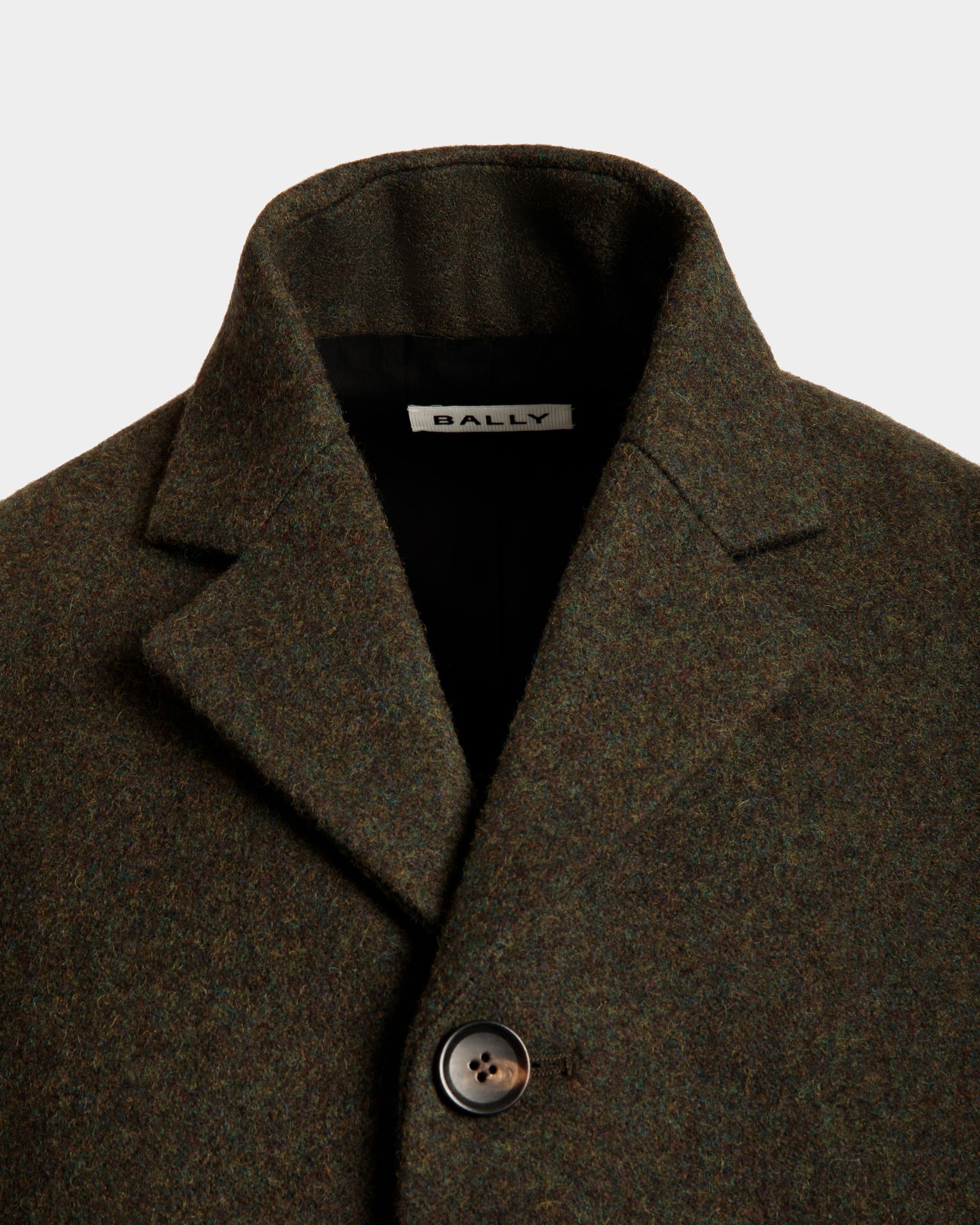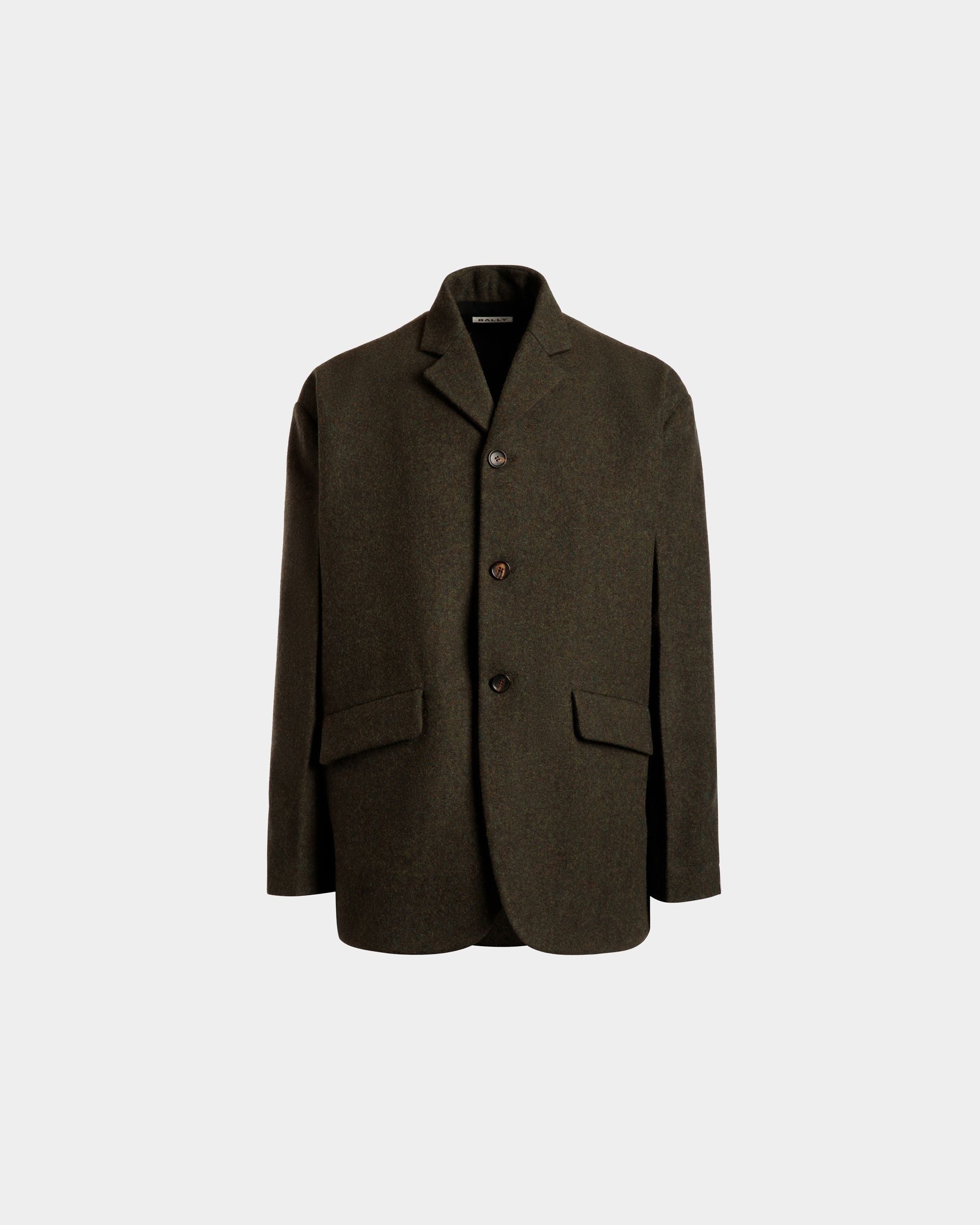 This single-breasted blazer with a notch lapel is cut into a simple silhouette from 100% wool loden with a mélange finish. Three horn buttons fasten the front.