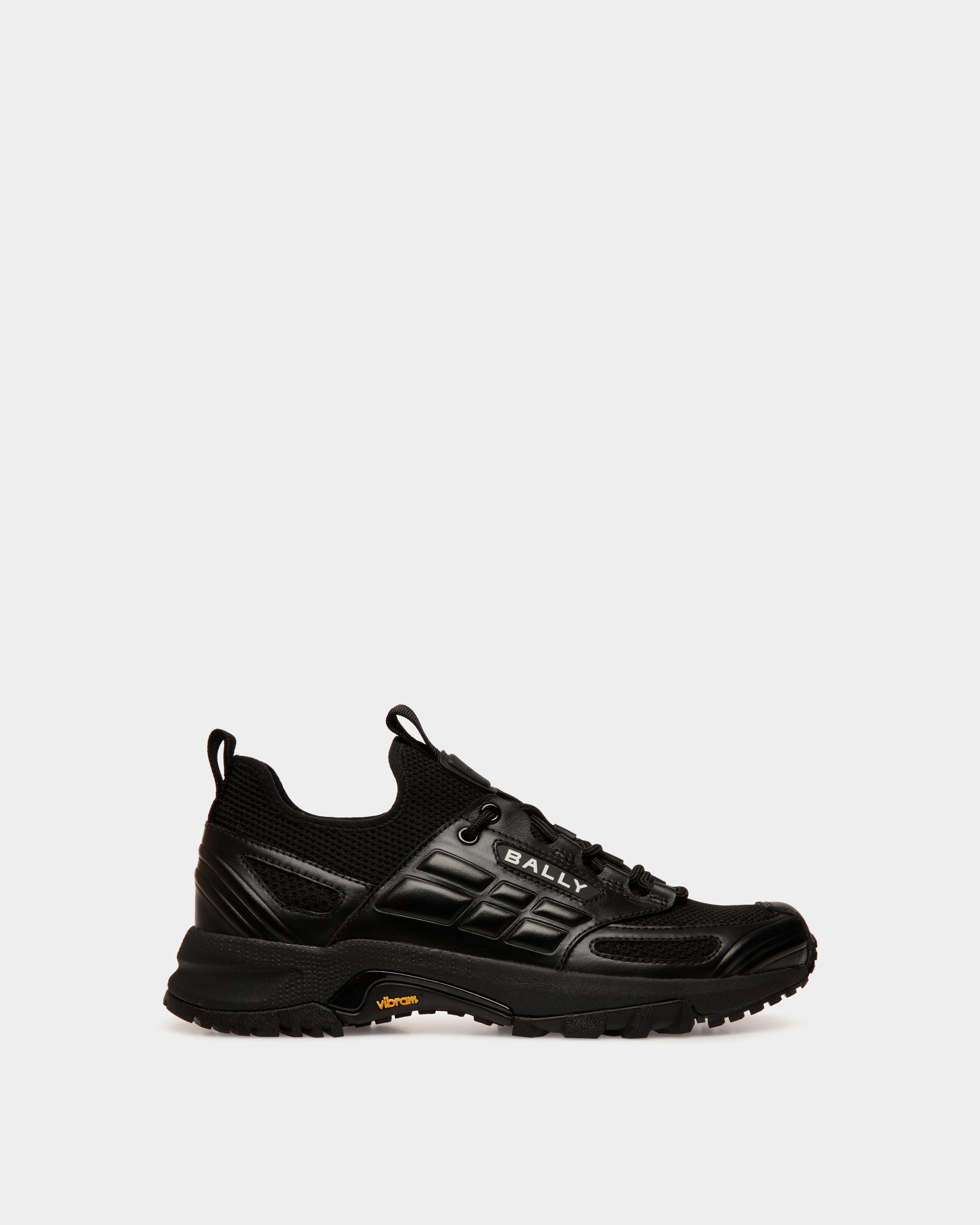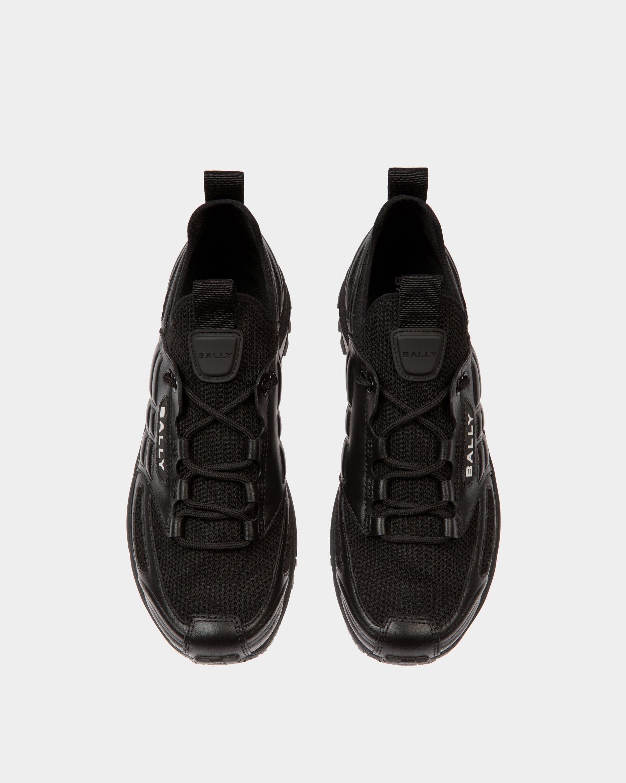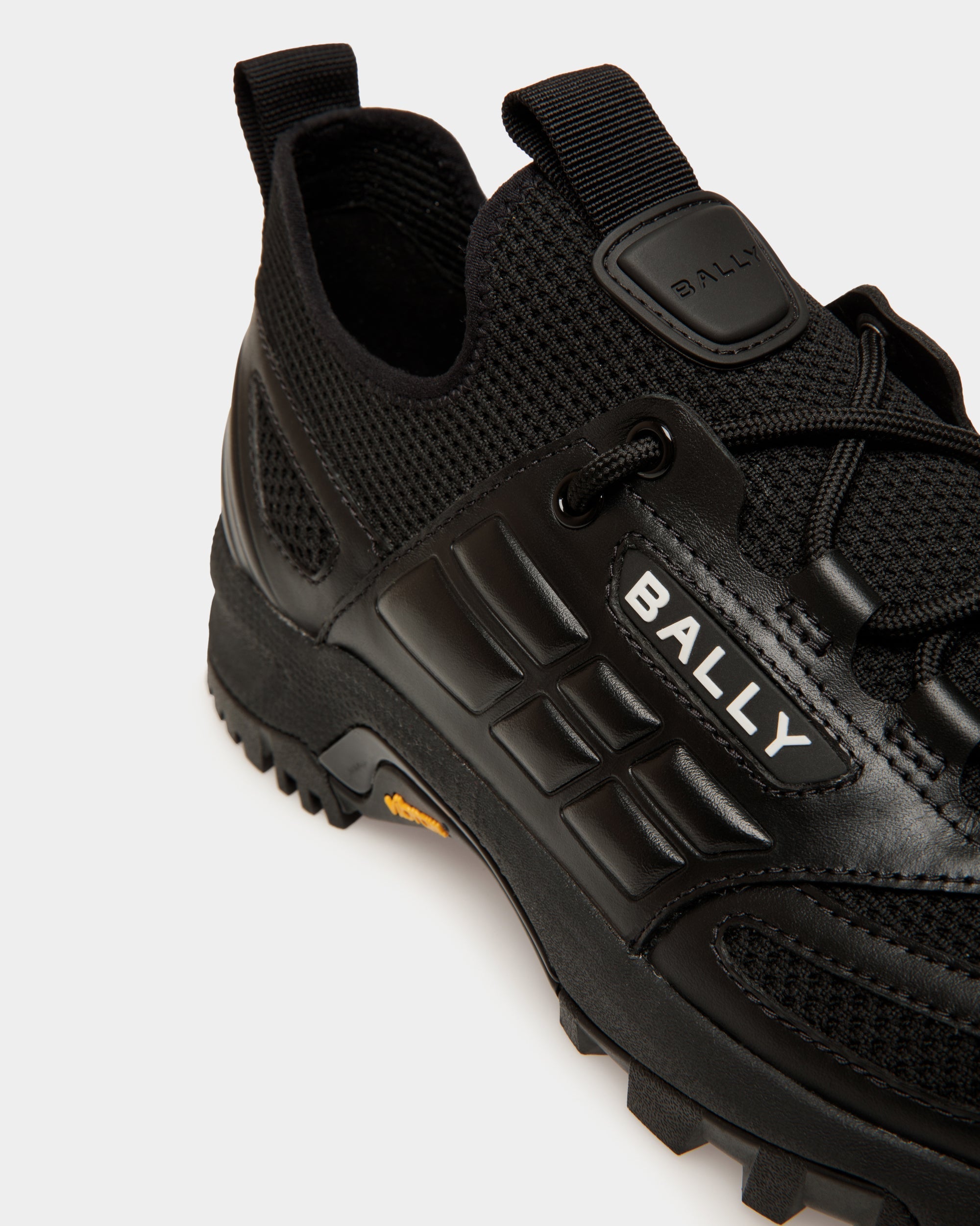 Inspired by running styles, this slip-on Faster sneaker is styled into a sleek black knit upper with leather trim and a chunky tonal sole in rubber. Front and rear pull loops ensure the slip-on ease of this style.