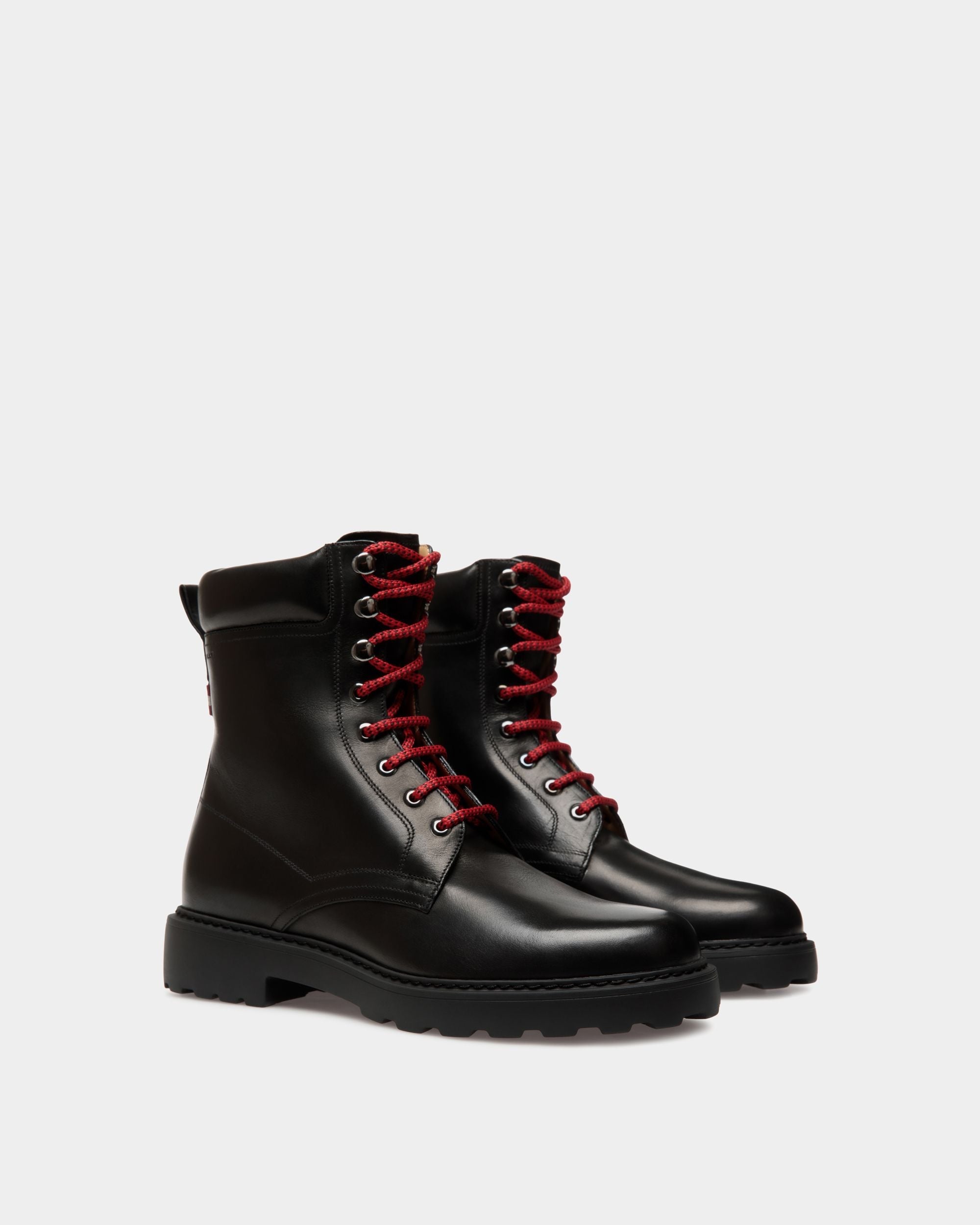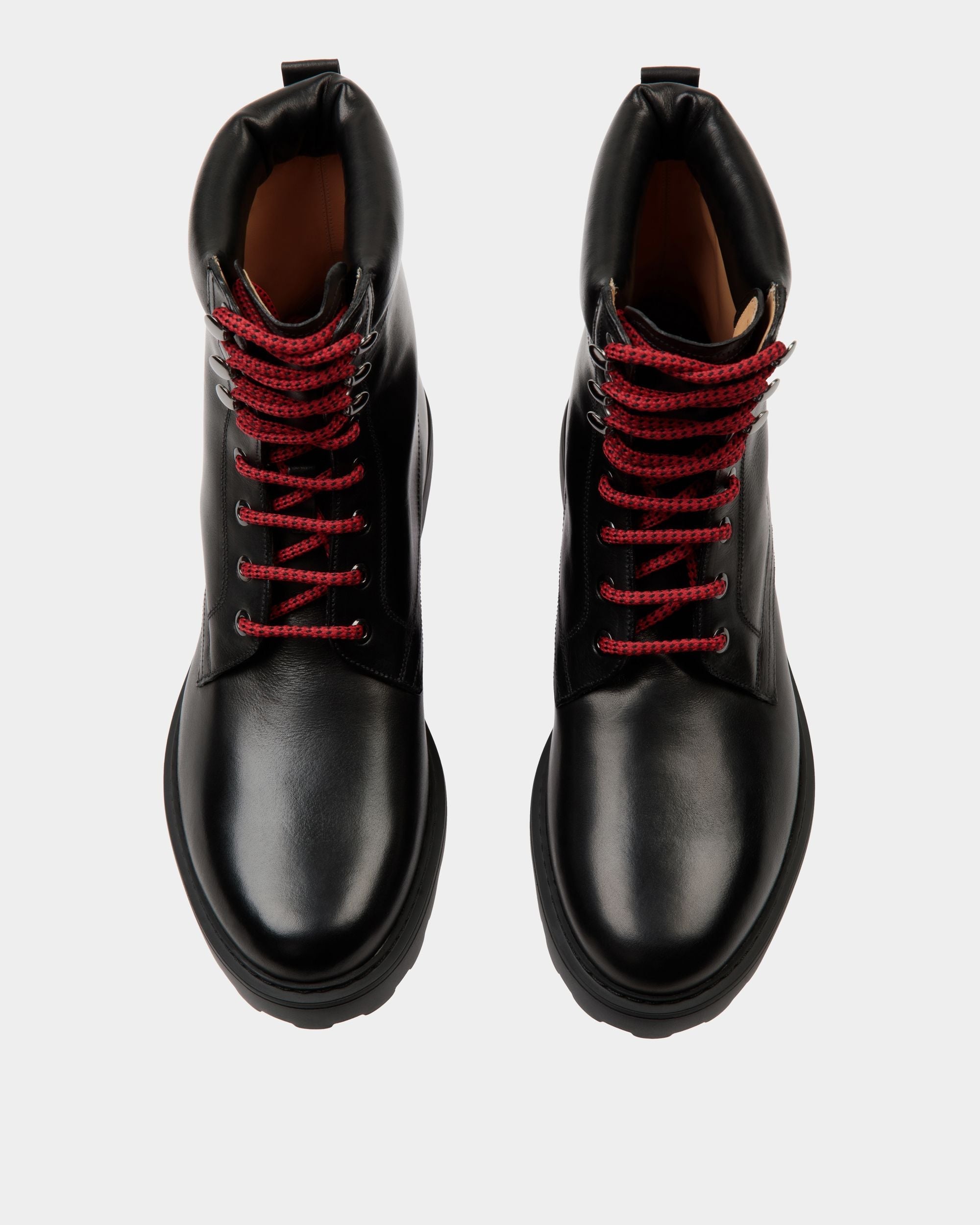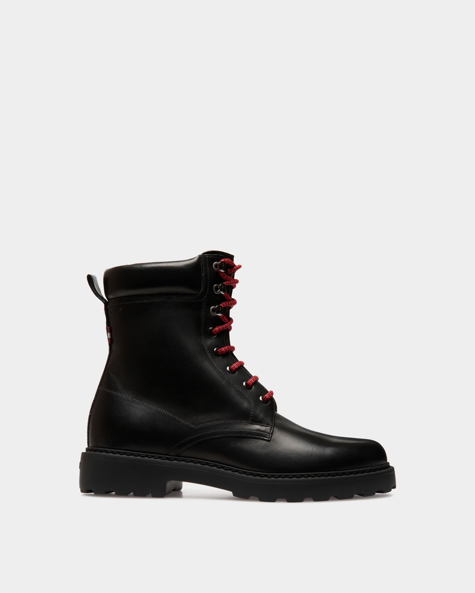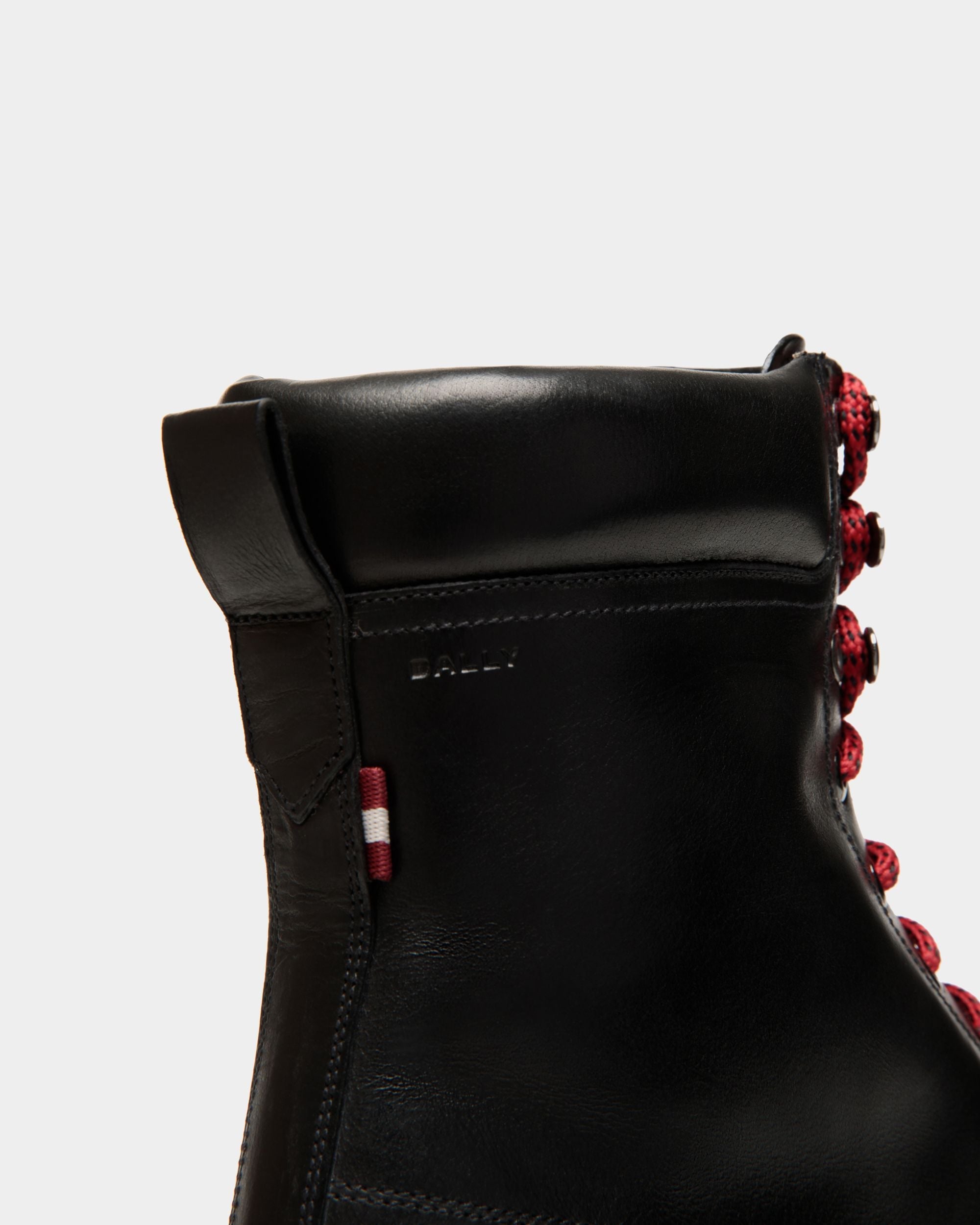 A chunky rubber sole brings a rugged aesthetic to this lace-up Gusto bootie in black buffalo leather, crafted with Bally's distinct attention to detail.