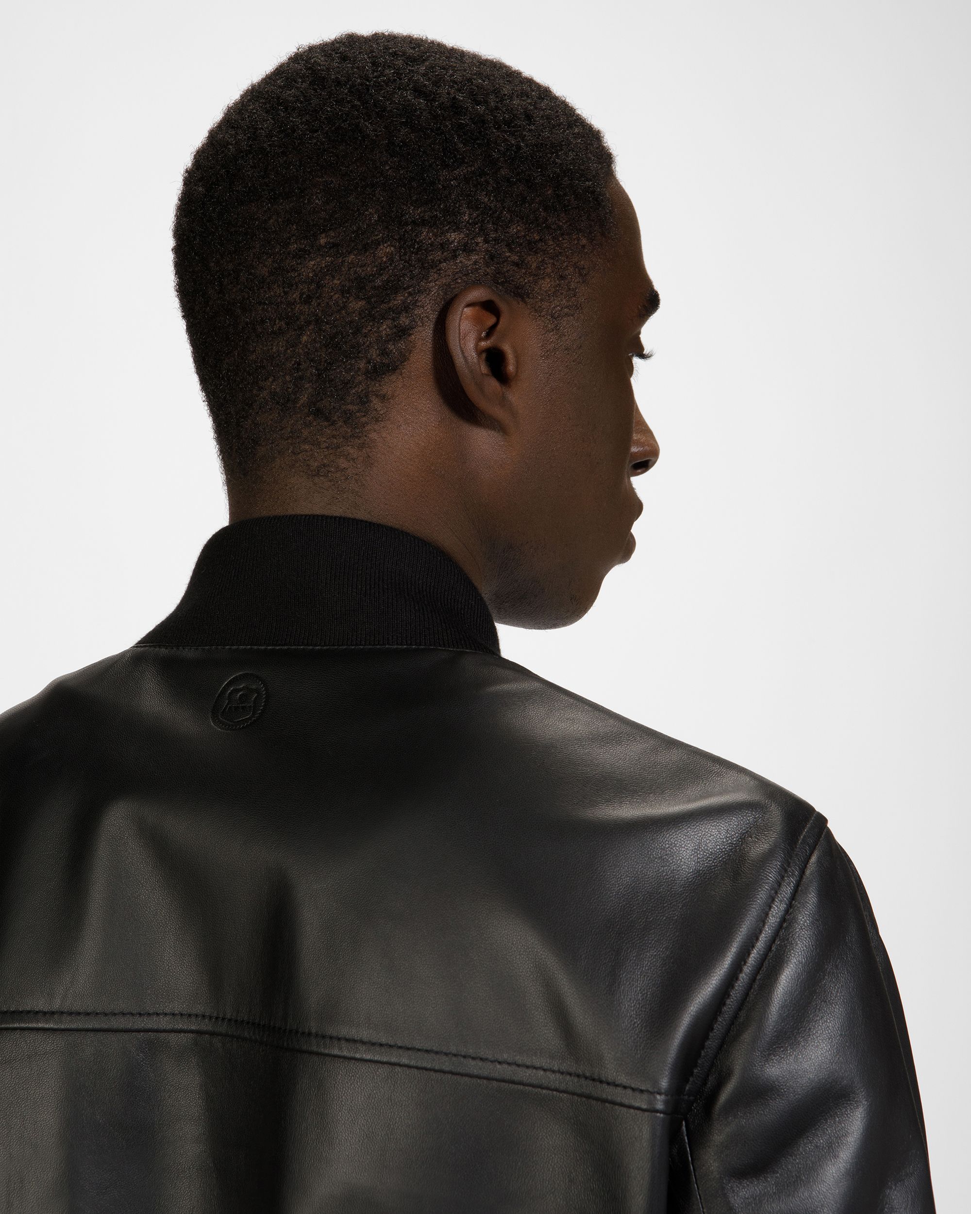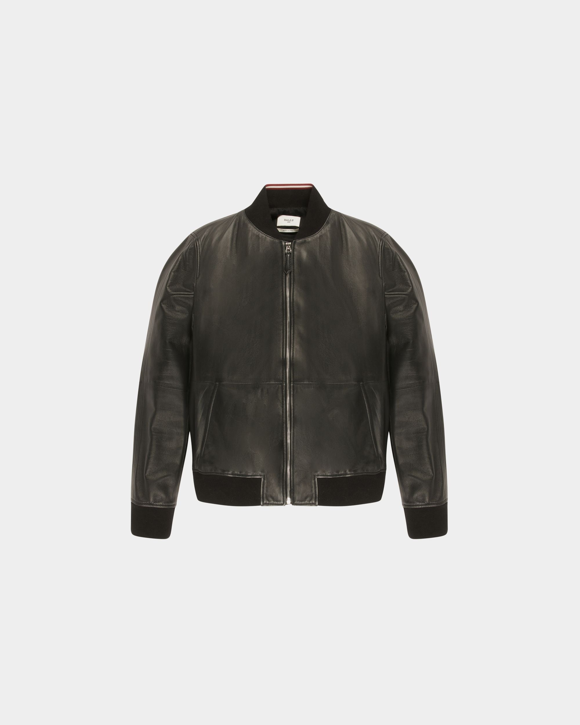 Finished in black, this blouson bomber is fastened with a zipper at the front, and finished with ribbing at the hem and cuffs.