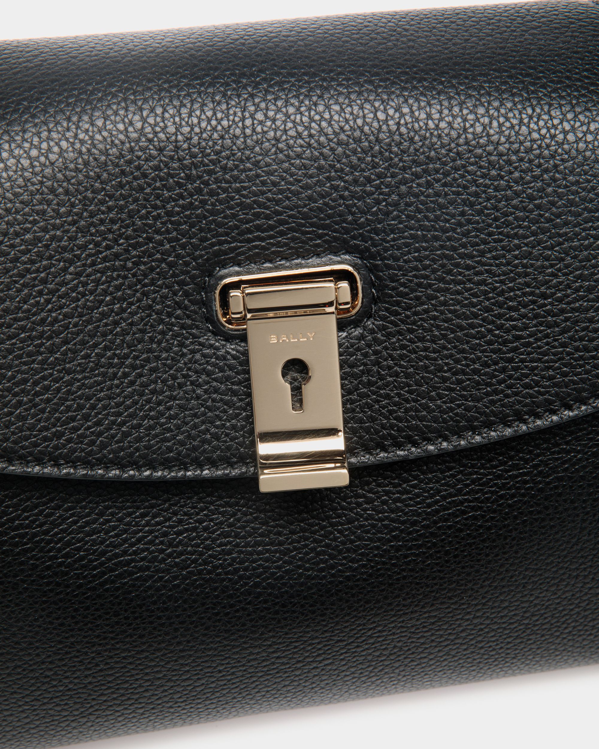 Embellished by the iconic Lock Me hardware with an engraved Bally logo, this small top handle bag in grained calfskin is crafted with precision. Its versatile geometric silhouette features a top handle and shoulder strap portability.