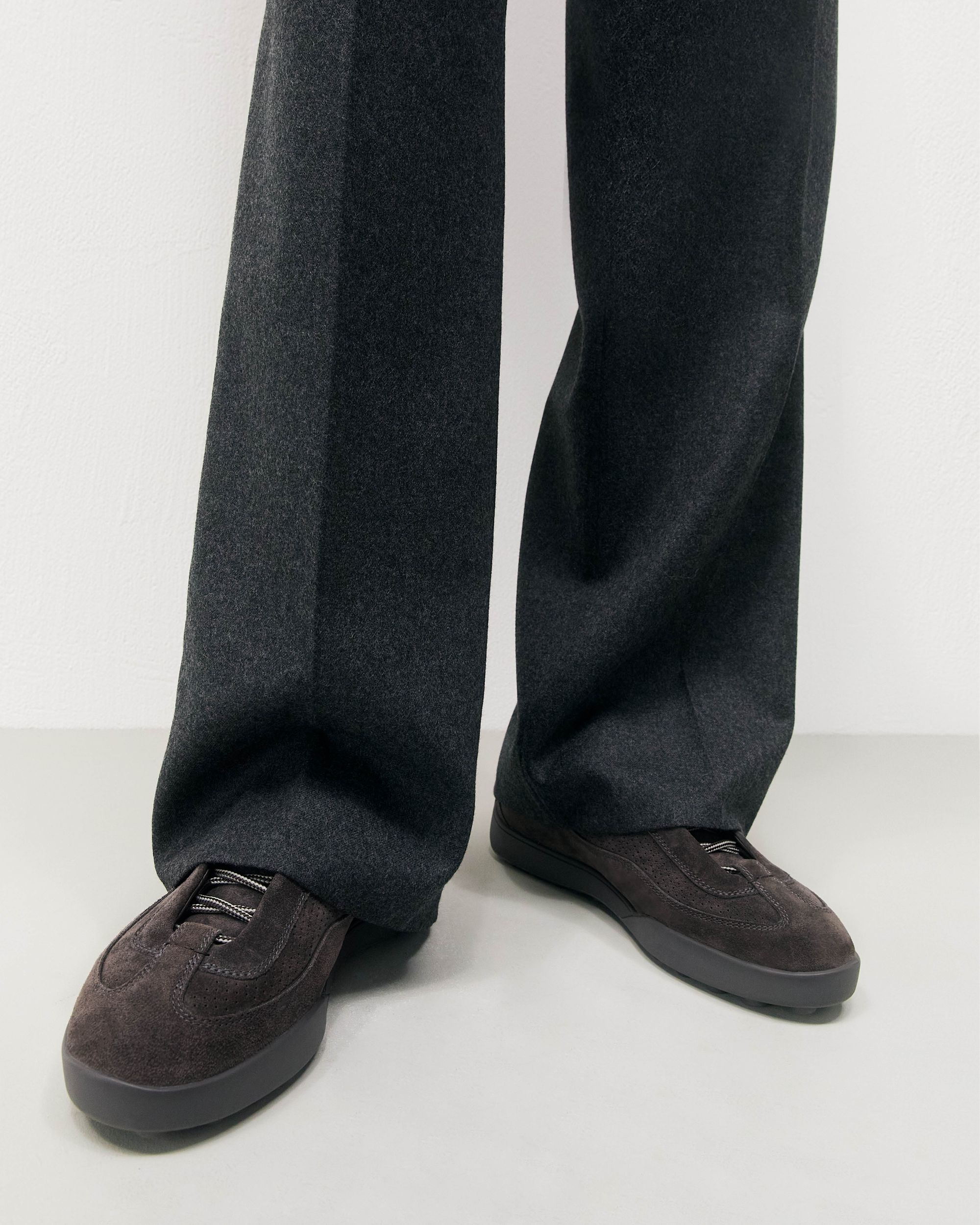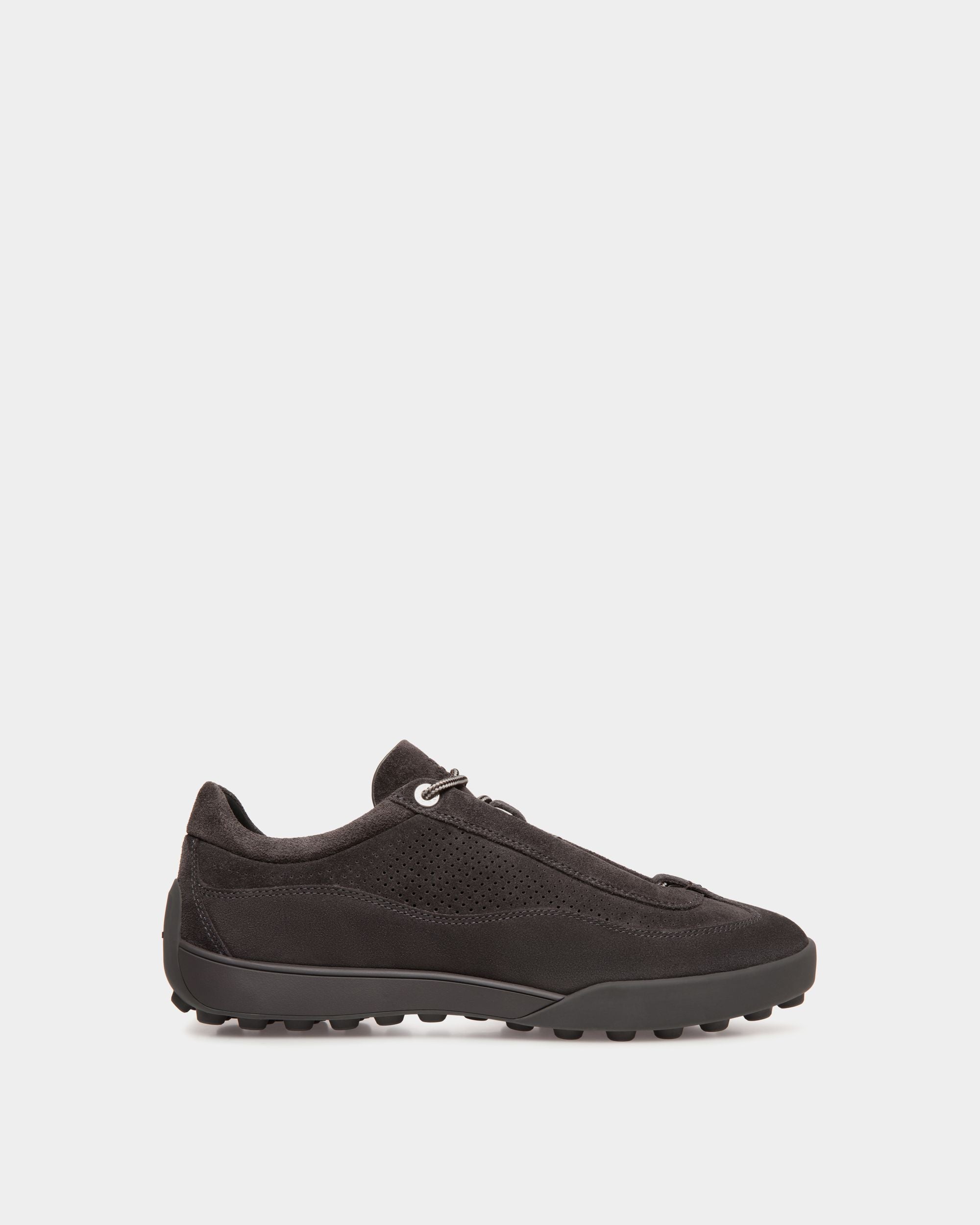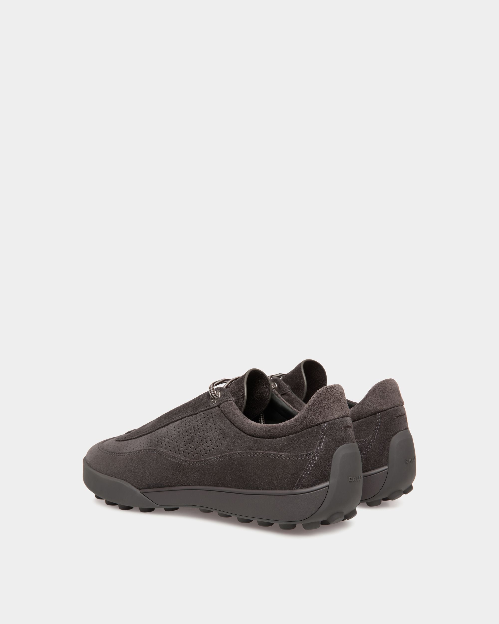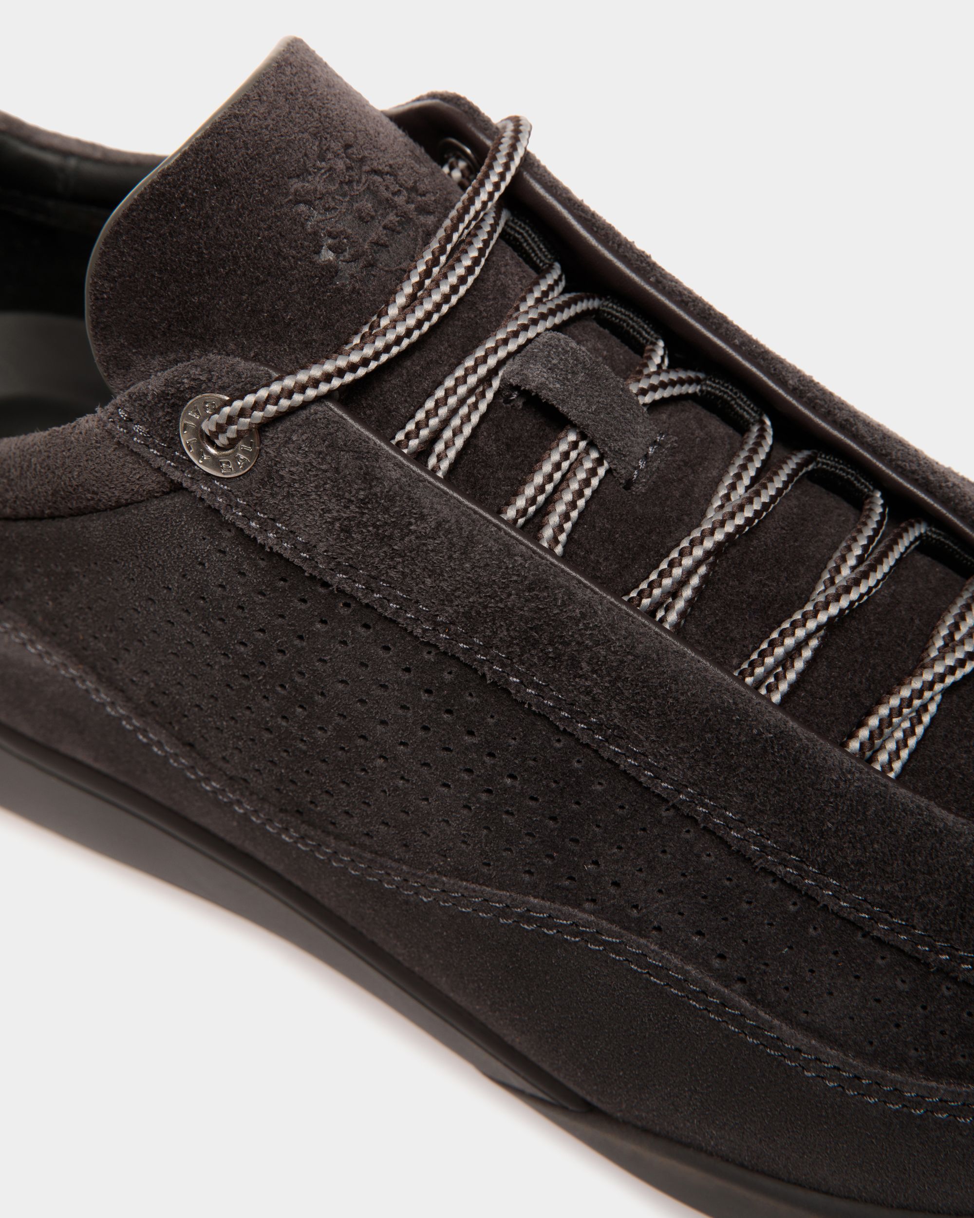 The Manto sneaker in dark grey suede features a meticulously crafted upper with perforations on the quarter and a concealed eyestay with round woven laces. A Bally Crest on the tongue ensures an iconic finish.