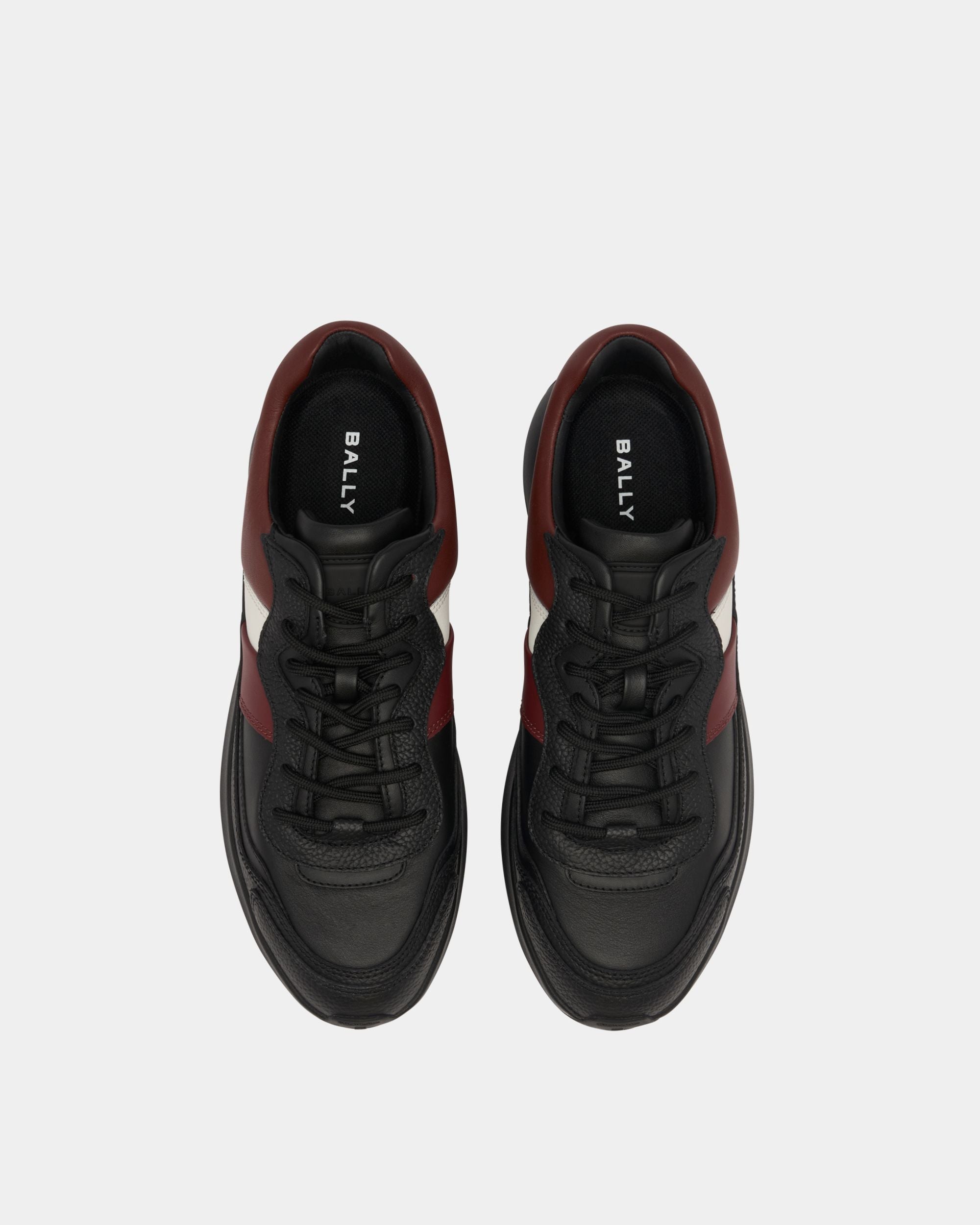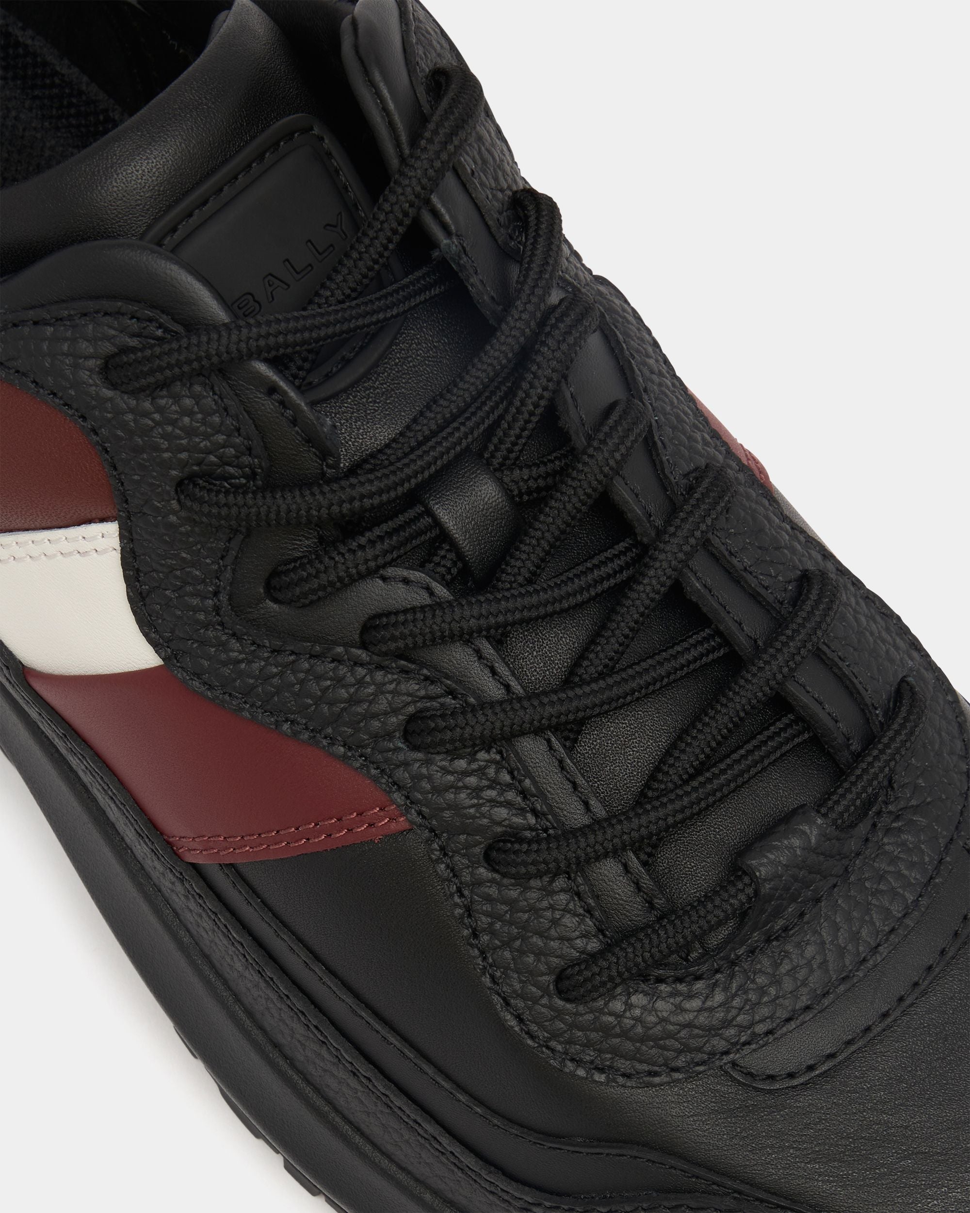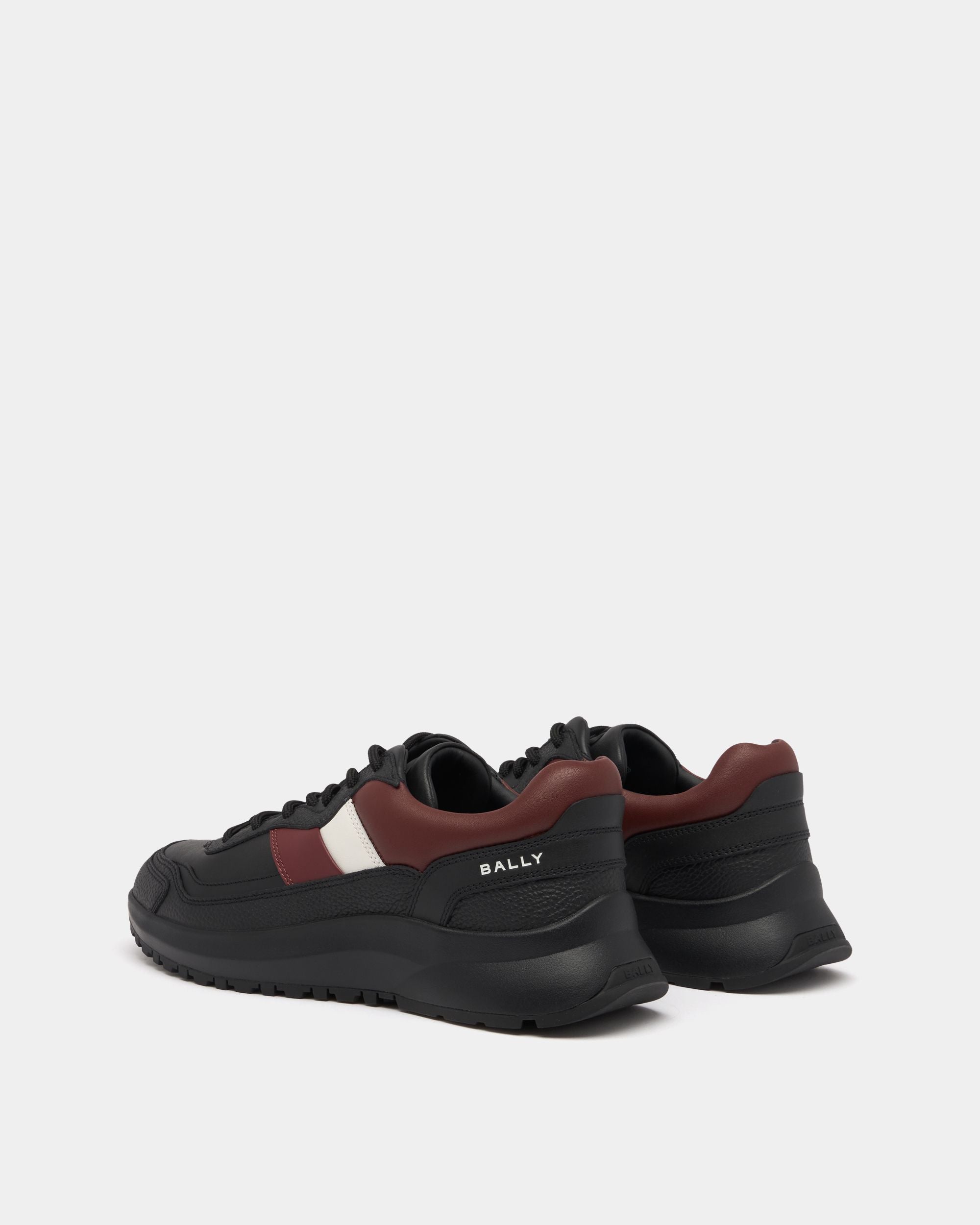 This black leather Outline sneaker is characterized by a grained finish and a chunky yet lightweight running sole that ensures all-terrain grip. Bally logos create a signature touch.