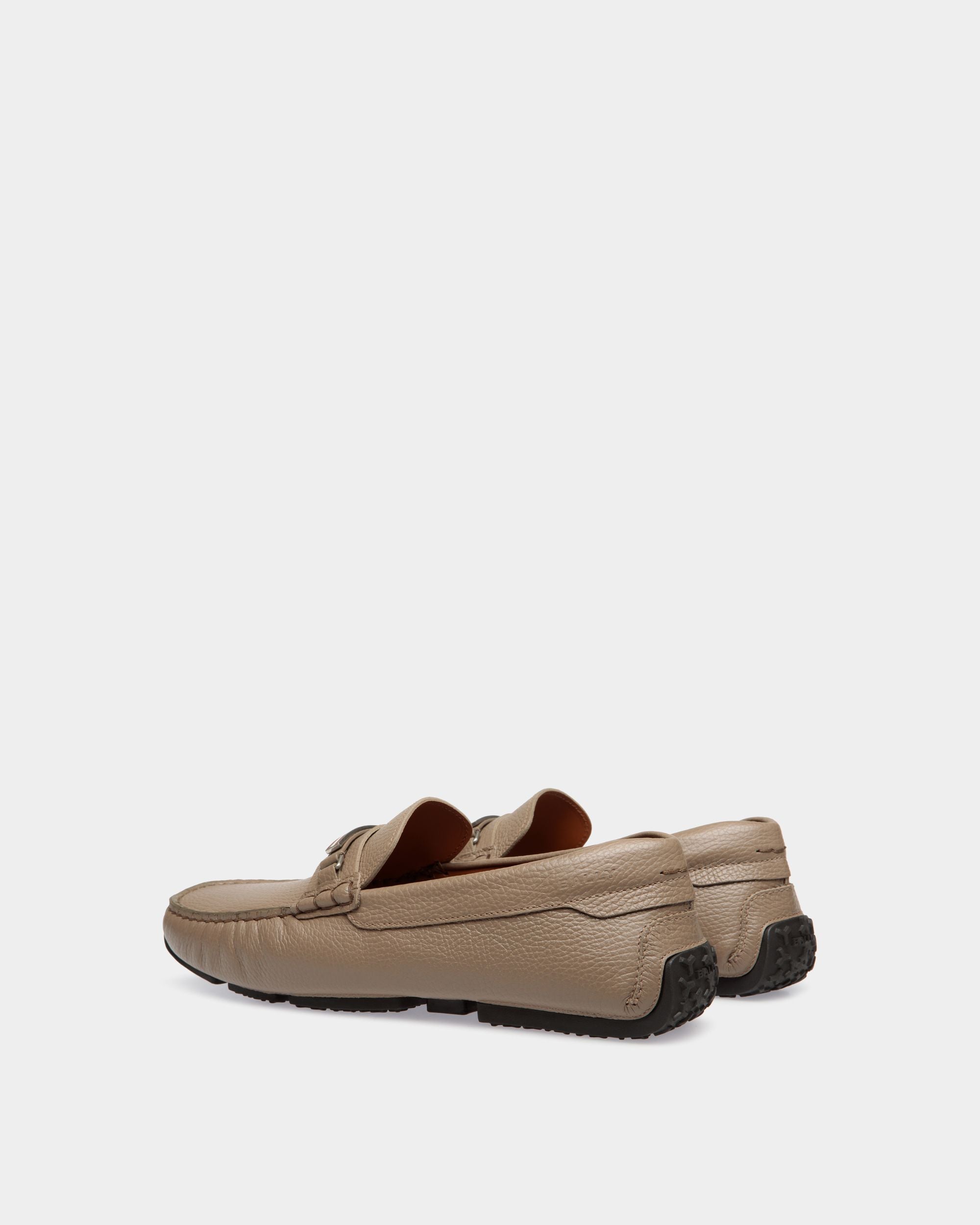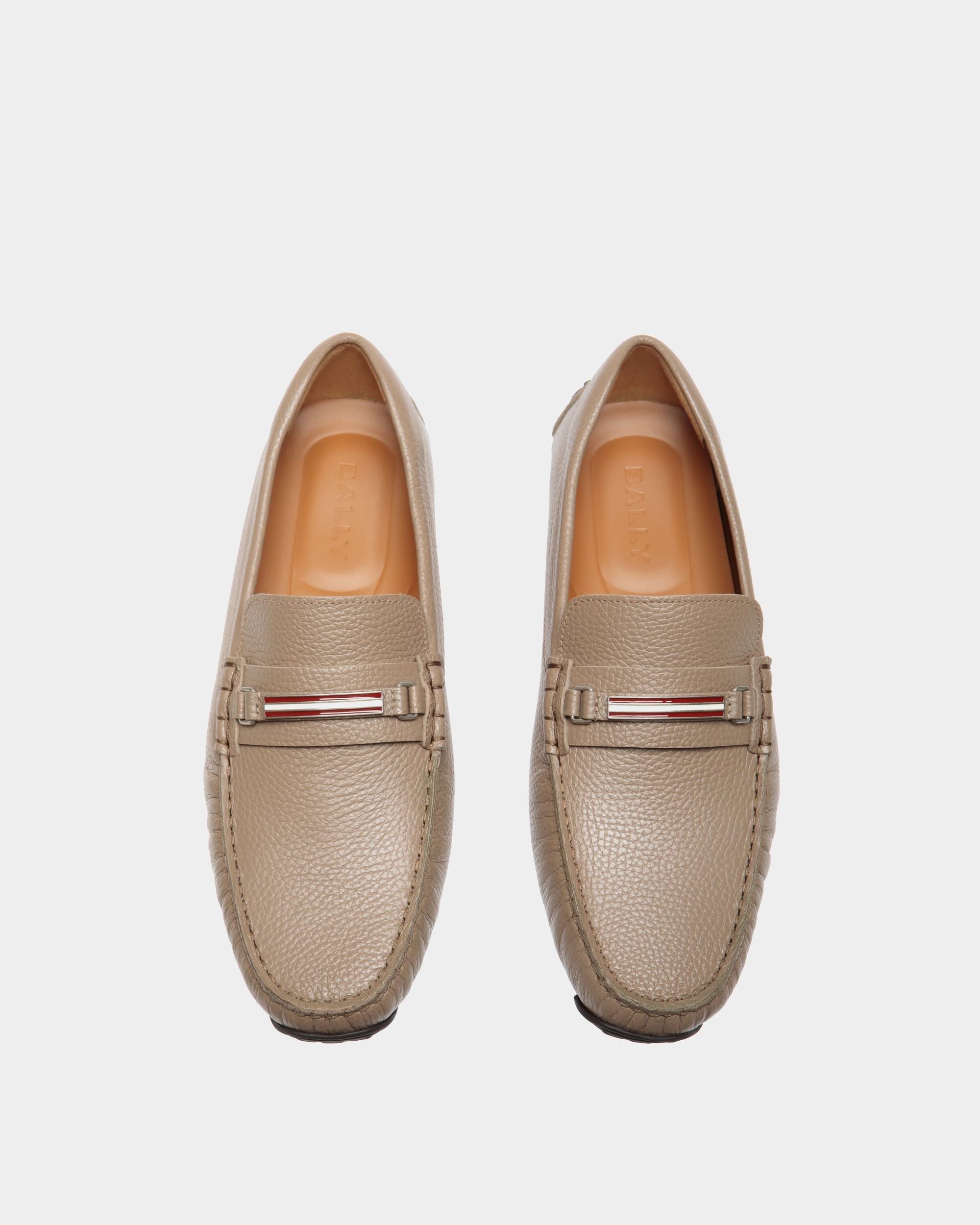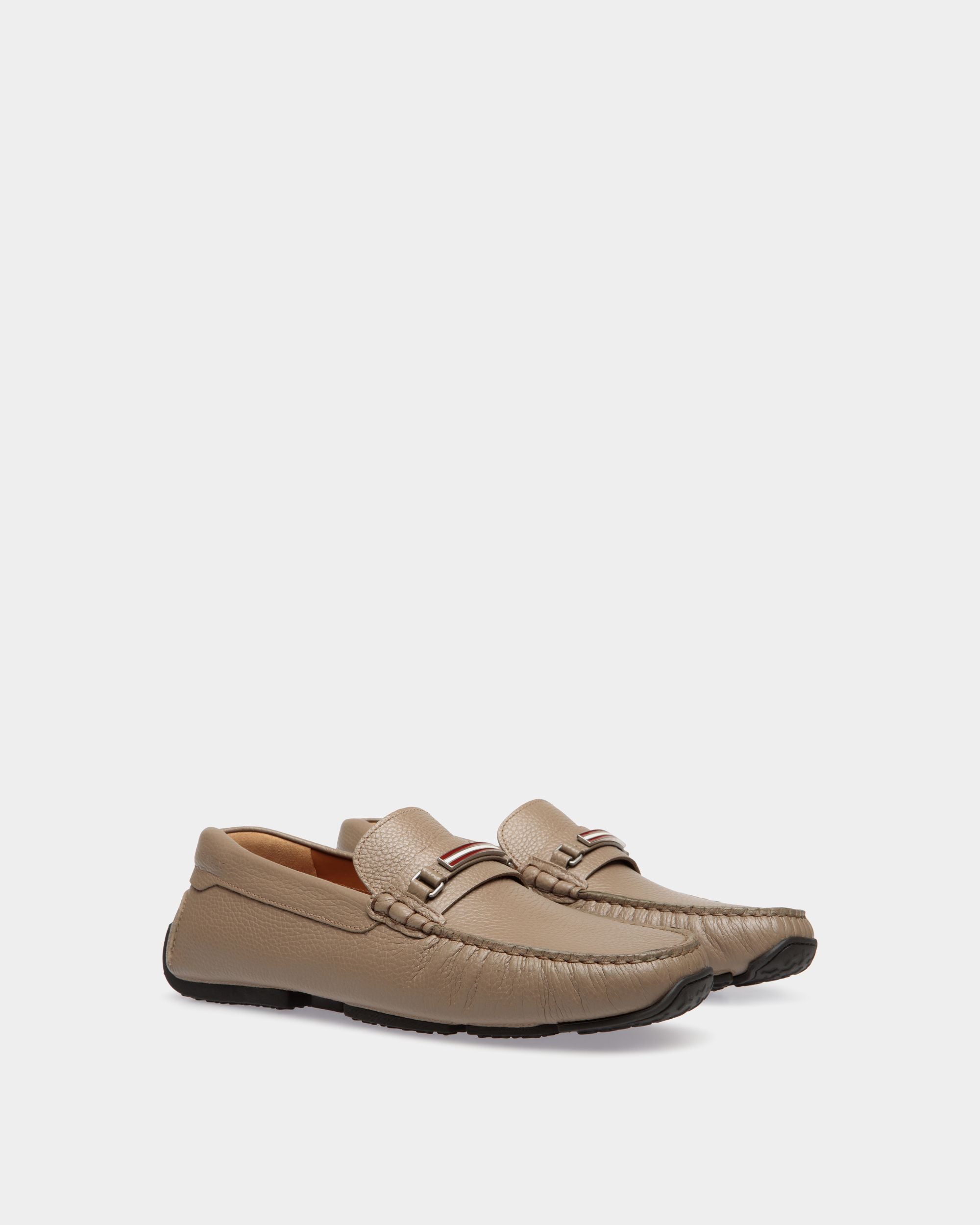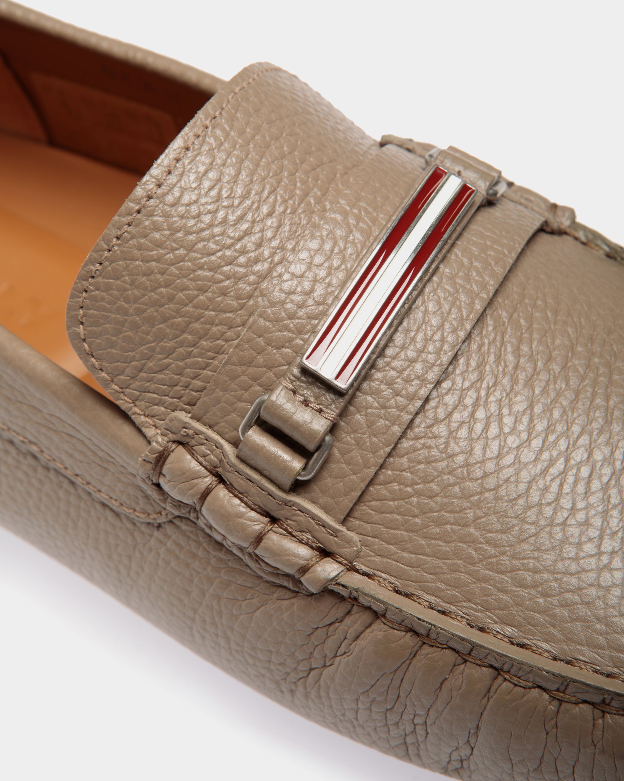 Classic and timeless, this Pilot driver in taupe grained leather is trimmed by a metal and enamel Bally Ribbon detail across the top of the vamp. Tubular Blake construction and a rubber split sole ensure step-in comfort.