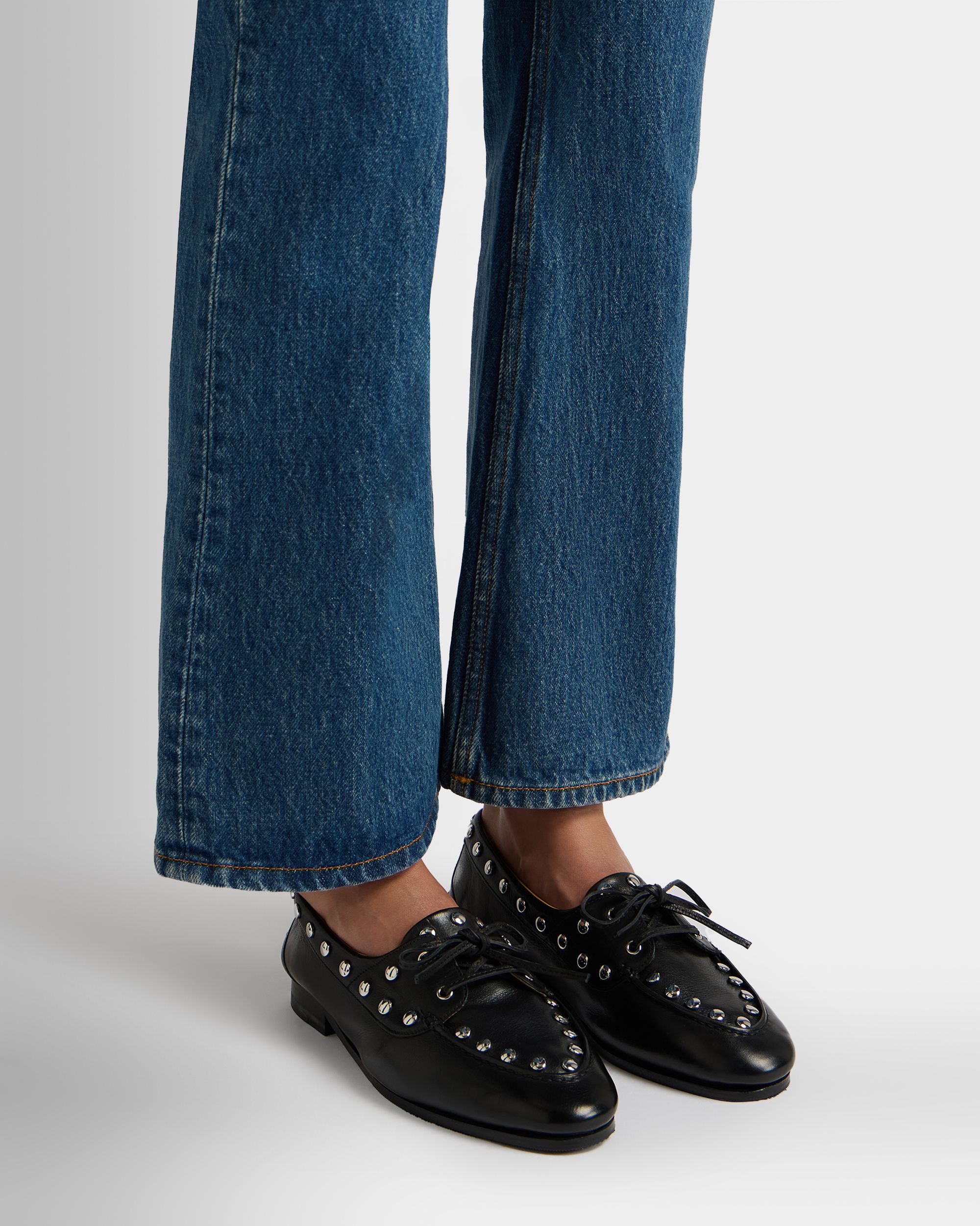 Plume Moccasin in Black Leather with Studs