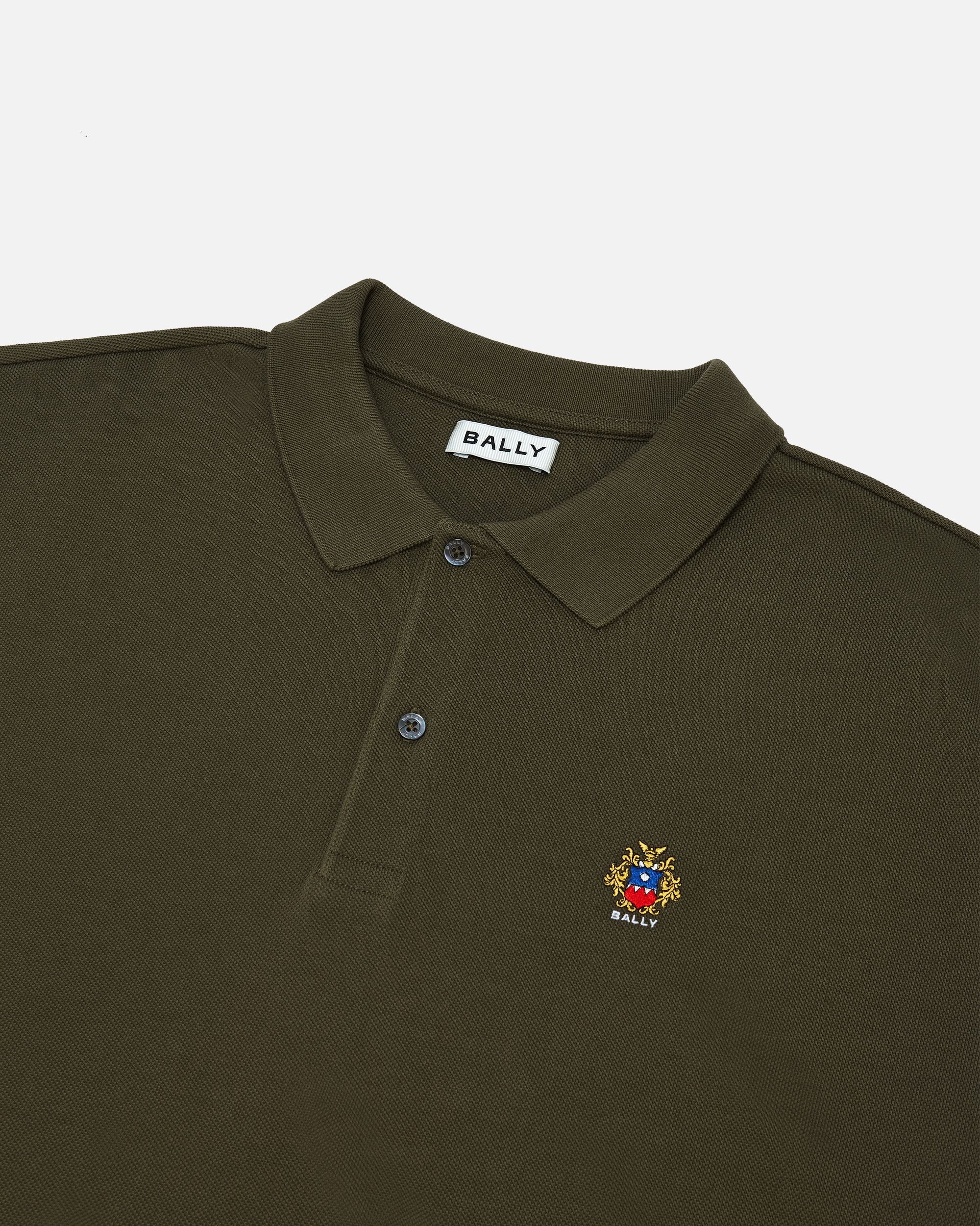 In piqué-knit fabric, this classic short-sleeve polo shirt is decorated by a Bally Crest on the left chest. Two buttons fasten the quarter placket neckline.