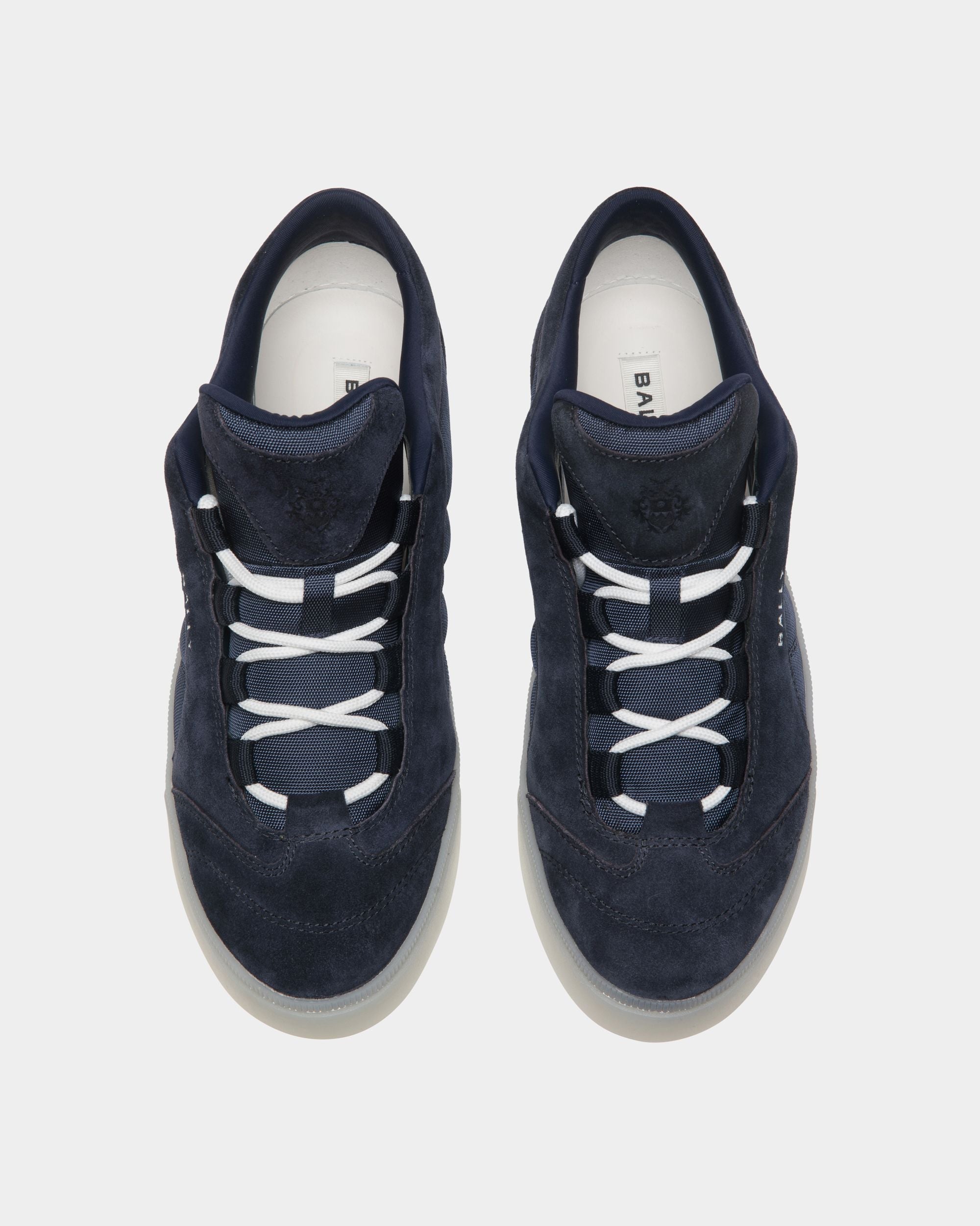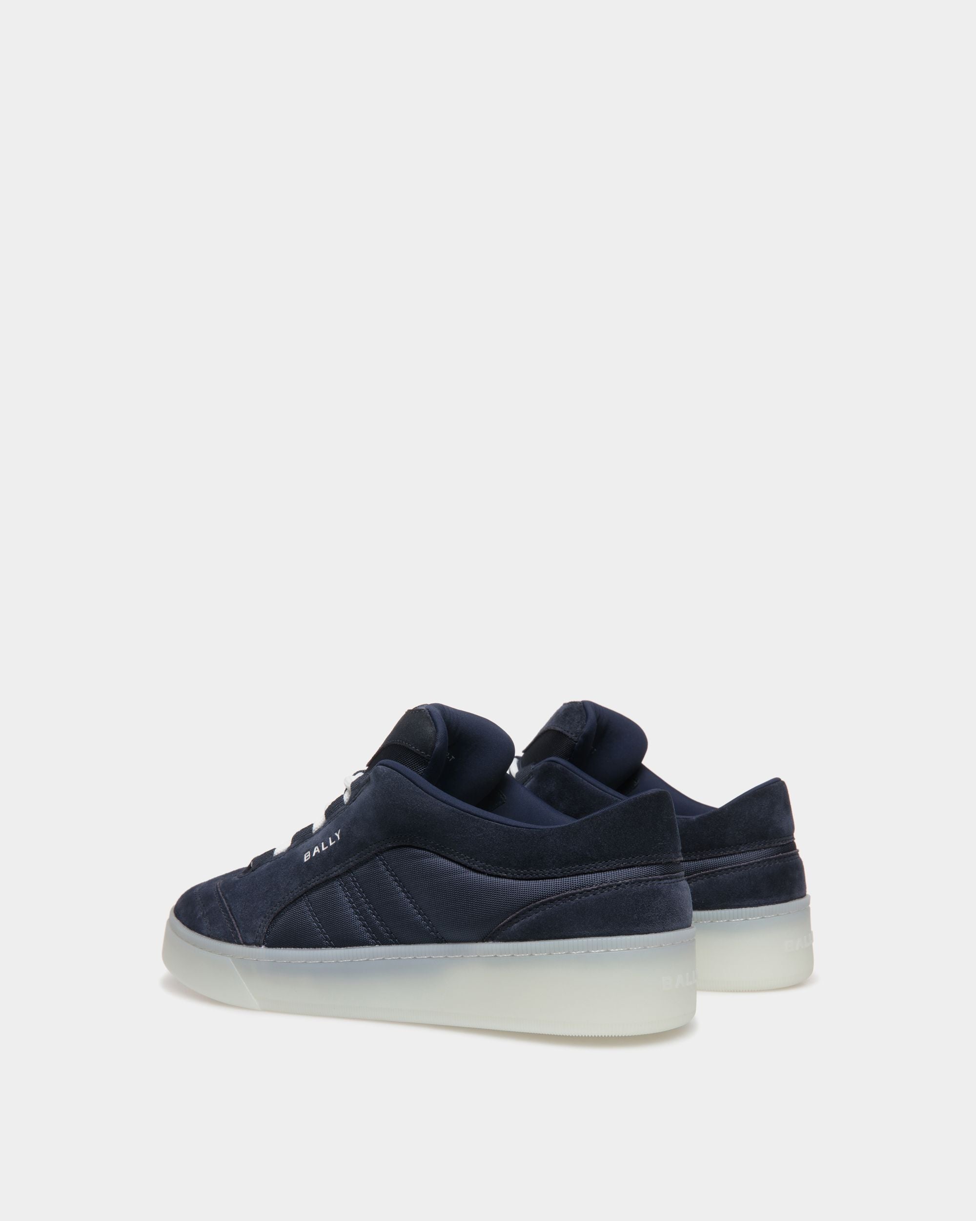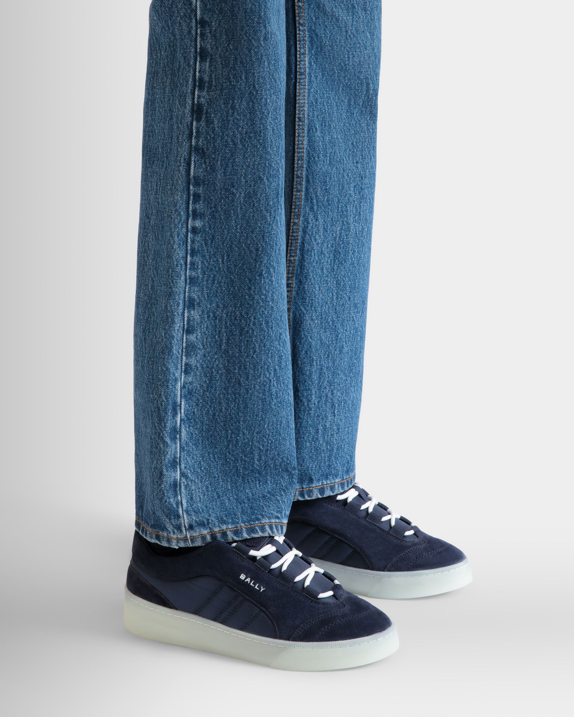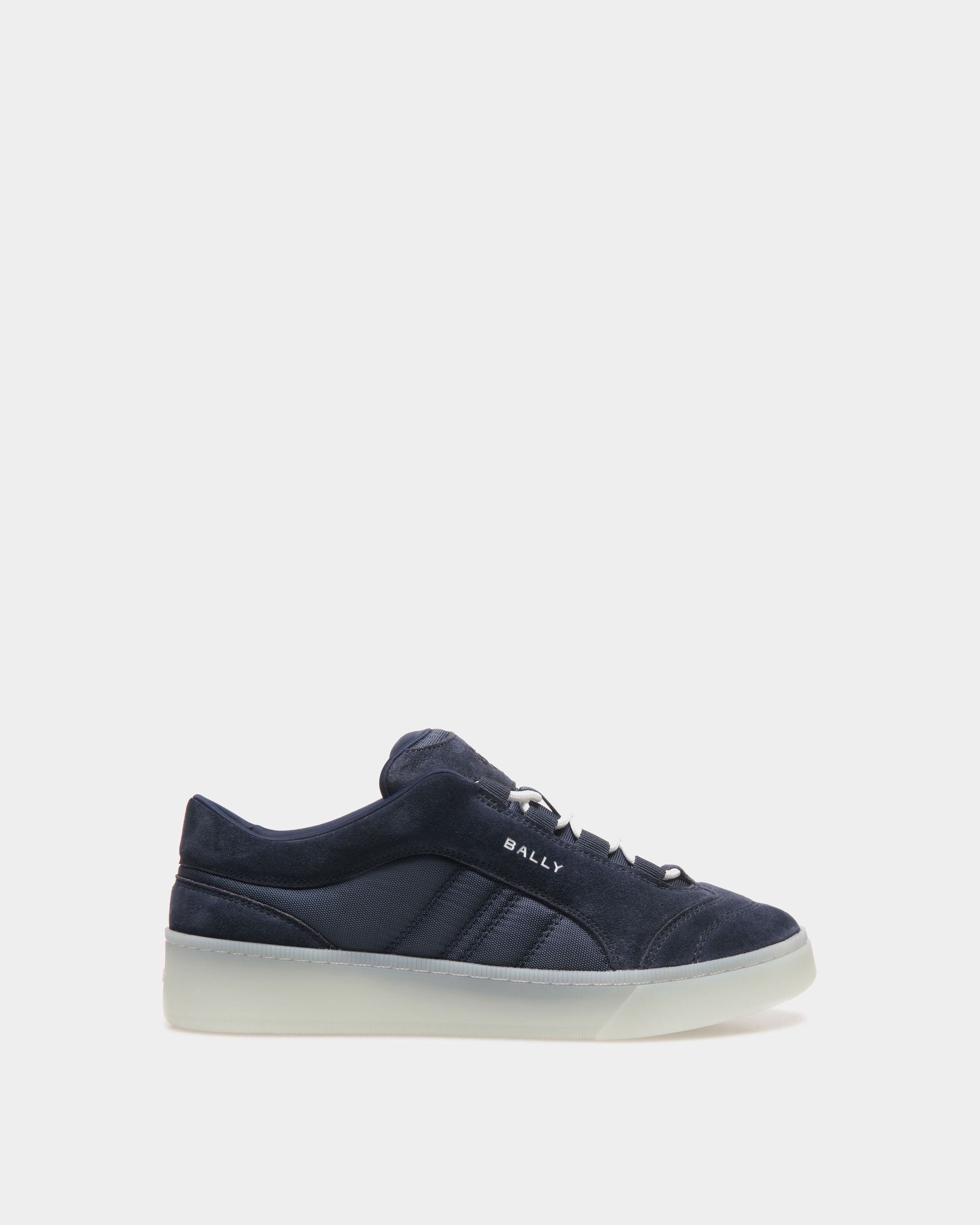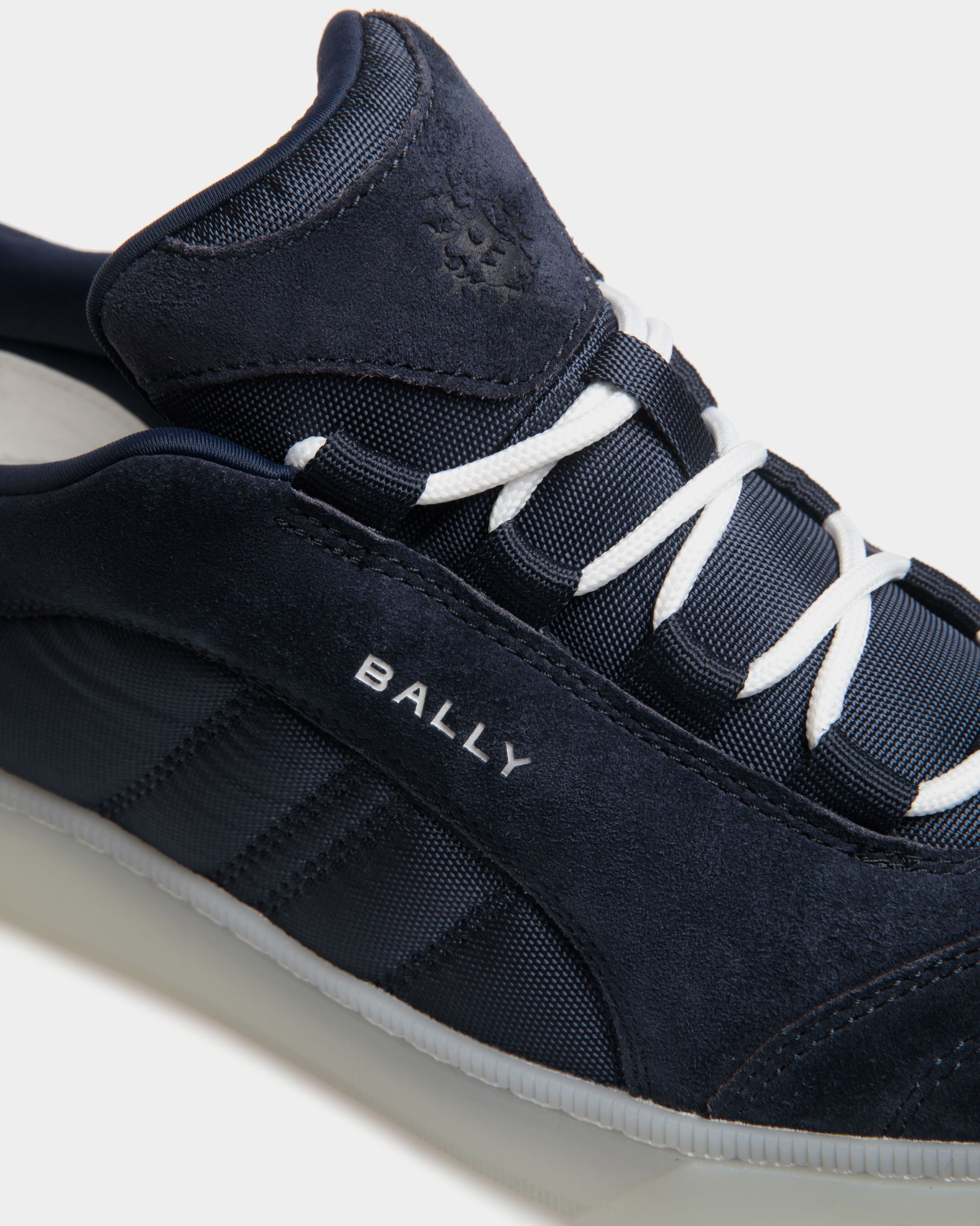 This Raise sneaker is crafted from navy blue suede and nylon into a round-toe silhouette with a subtle Bally Ribbon and logo at the side. The Zahogel footbed and rubber sole ensure wear-anywhere comfort.