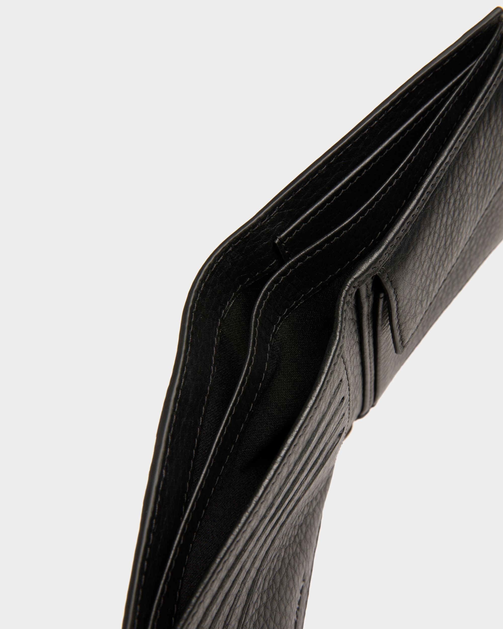 This grained leather wallet is adorned with understated palladium hardware and a single ribbon stripe. An internal coin compartment adds extra appeal.