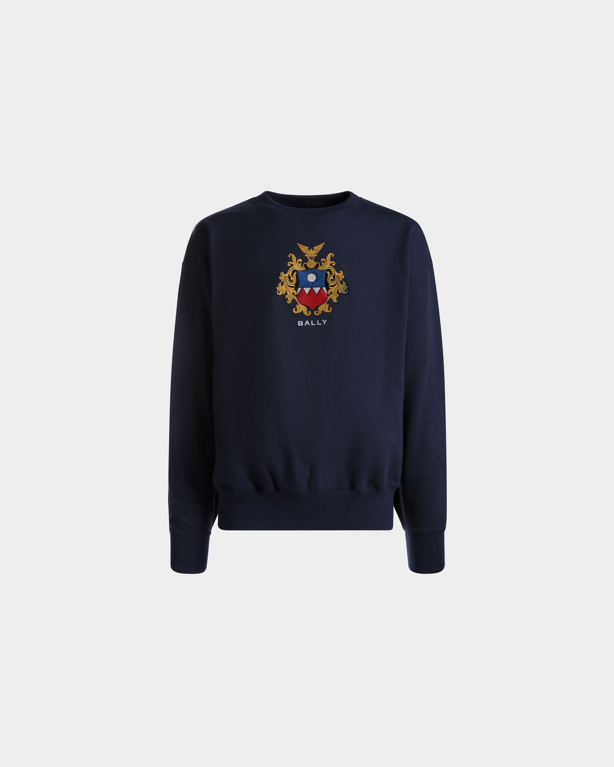 An embroidered Bally crest features boldly on the chest of this navy blue cotton sweatshirt. The soft fabric and classic design are expressed through a crew neck, long sleeves and ribbed trim.