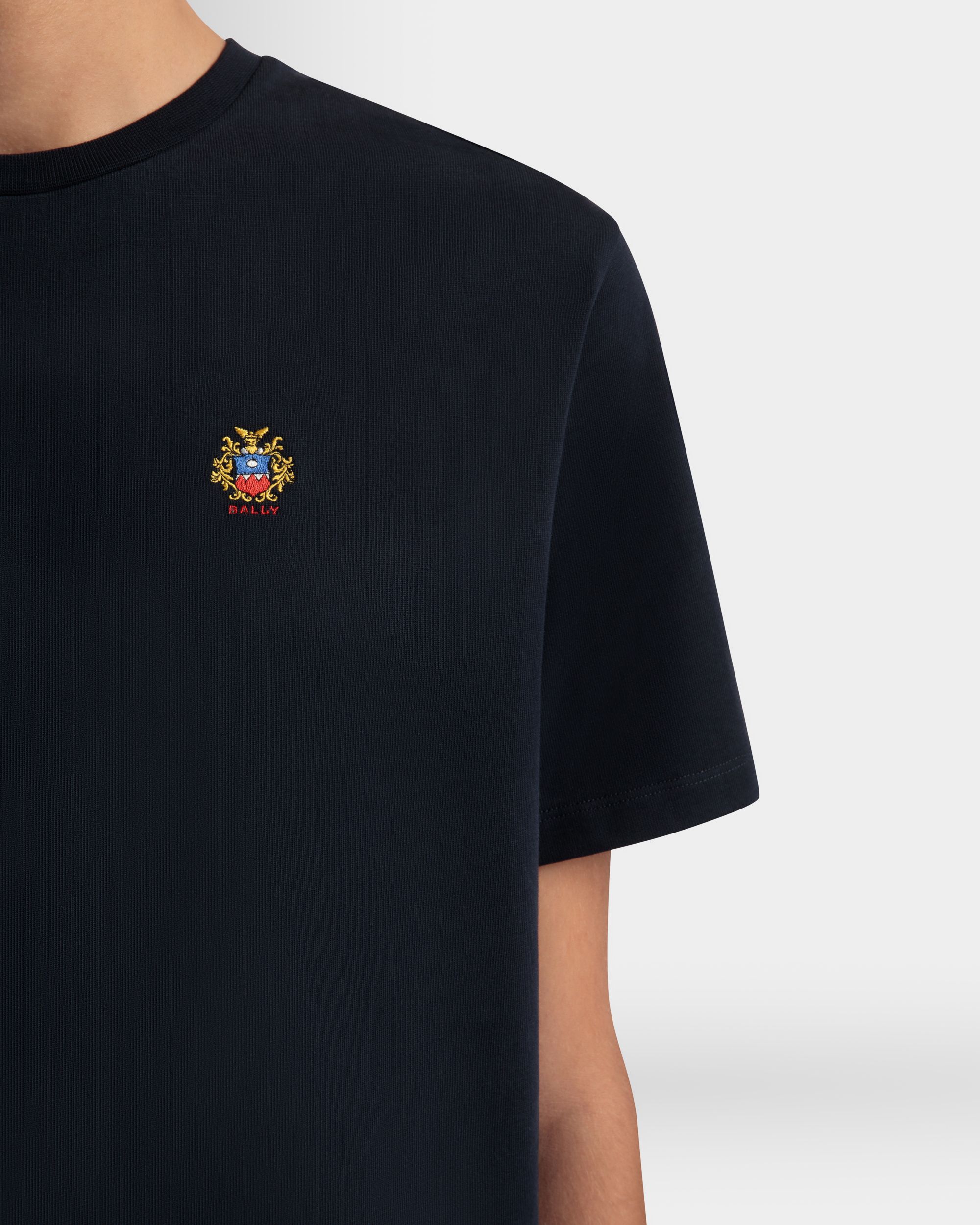 T-Shirt With a Bally Crest Logo In Navy Blue Cotton